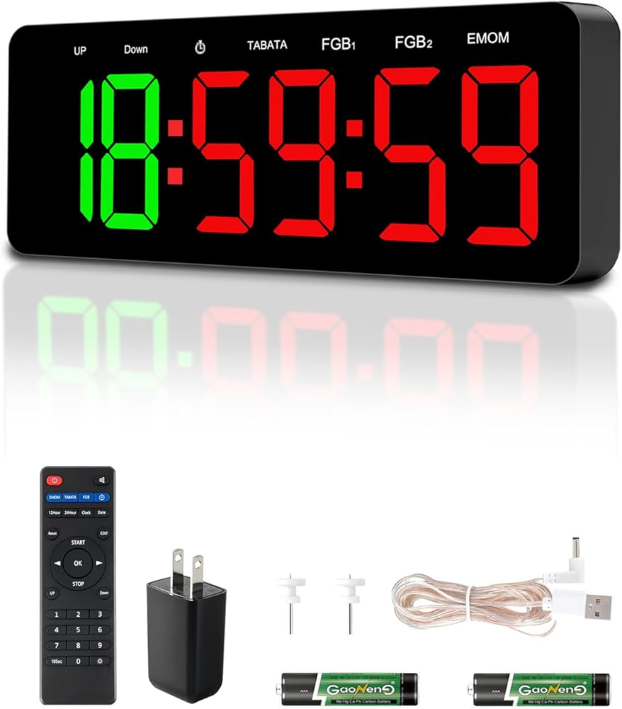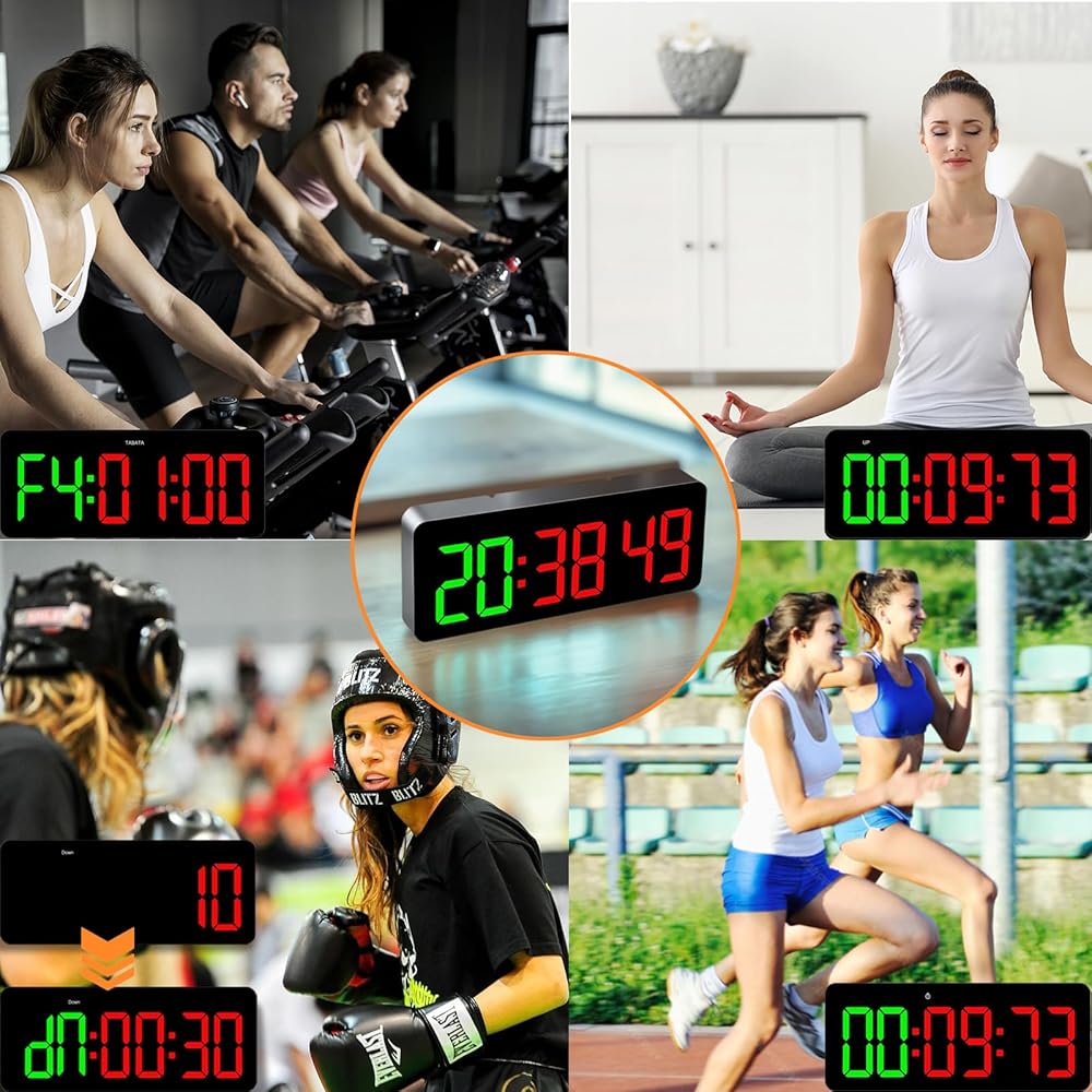 مؤقت ساعة الصالة الرياضية لـ Tabata/FGB/EMOM، تمرين فاصل مع شاشة LED كبيرة، ساعة حائط رقمية بالثواني | مؤقت للياقة البدنية مع جهاز تحكم عن بعد لمكتب المرآب المنزلي في الفصل الدراسي