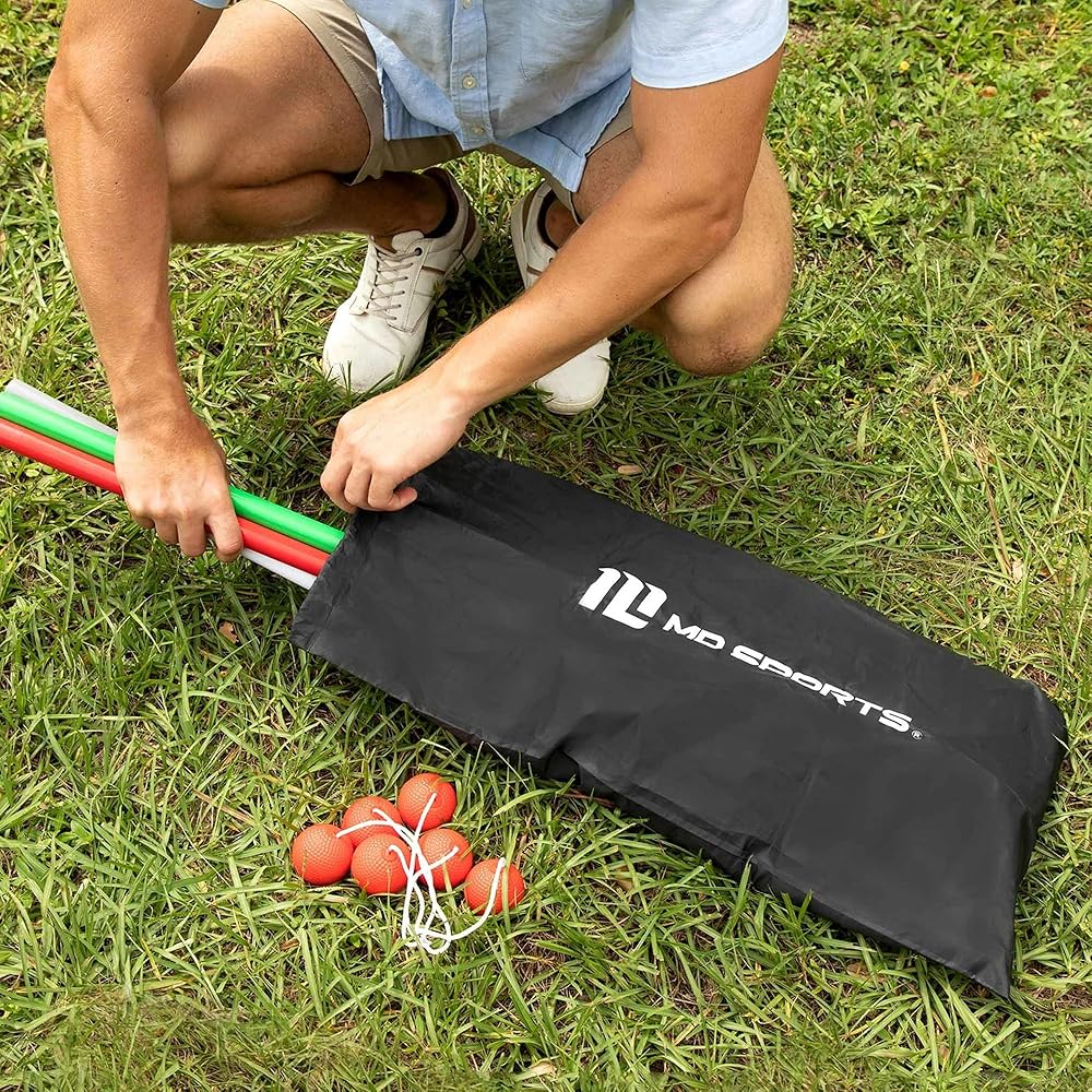 مجموعة ألعاب رمي السلم الرياضي من إم دي، بولي كلوريد الفينيل قابل للطي وقابل للحمل مع قاعدة مرجحة، سجل مدمج، هدفين، 6 بولس، حقيبة حمل، مثالية للتجمعات الداخلية والخارجية