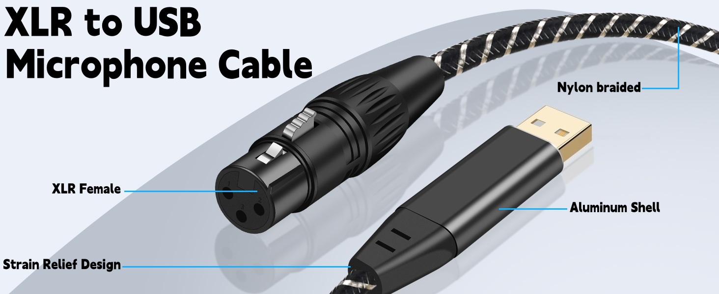 قوي ومرن: محمي بسترة مضفرة من النايلون + القطن، مما يعزز المرونة مع حماية كابل USB XLR من الكسر والتشابك. يستخدم موصل مركزي من النحاس الخالي من الأكسجين (OFC) لتعزيز نقل الإشارة. يوفر العزل PVC والدرع النحاسي عالي الكثافة منع الضوضاء لضمان التشغيل الهادئ. مقابس XLR ذات غلاف معدني شديد التحمل من أجل حرفية فائقة.