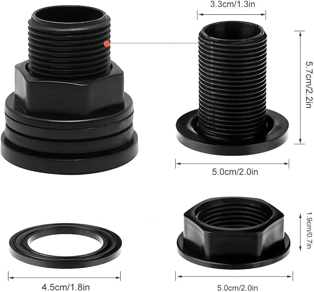 Feature: The double threaded bulkhead fittings are 3/4 inch male and 1/2 inch female thread, which are applicable models fitting for most items