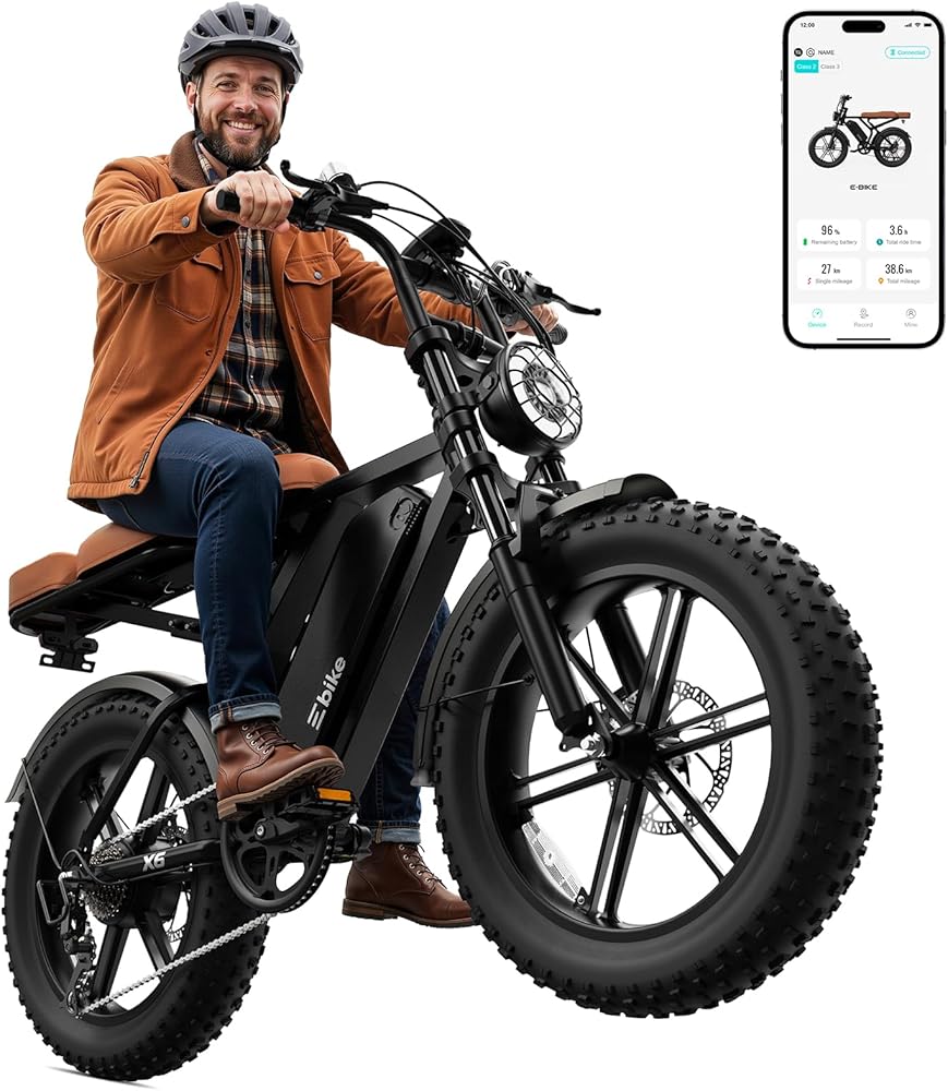 دراجة كهربائية SISIGAD للبالغين، محرك ذروة 1800 وات، 32 ميل في الساعة 70 ميل، إطار سميك 20 بوصة دراجة E ريترو، بطارية قابلة للإزالة 48 فولت 15 أمبير، Ebkie 7 سرعات للتنقل في المدينة، الطرق الوعرة، الجبال، UL 2849