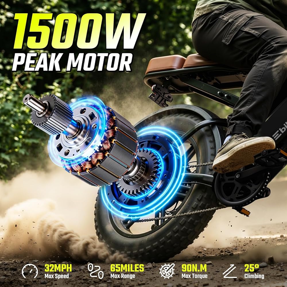 ⚡️ محرك ذروة قوي بقدرة 1500 واط وسرعة 30 ميلاً في الساعة: استمتع بالتسارع المثير وتغلب على التلال شديدة الانحدار باستخدام محرك الذروة القوي بقدرة 1500 واط. تصل سرعة هذه الدراجة الكهربائية للبالغين إلى 30 ميلاً في الساعة بسهولة، مما يجعلها مثالية للتنقل في المدينة والطرق الوعرة والممرات الجبلية. استمتع بقيادة سلسة وقوية تقلل من وقت السفر وتضفي الإثارة على كل رحلة.