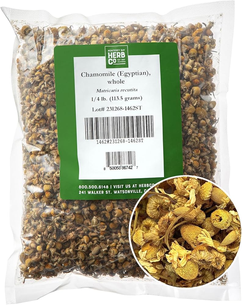 PREMIUM WHOLE FLOWERS: Pure Egyptian chamomile (German chamomile species) perfect for brewing tea or enhancing culinary dishes