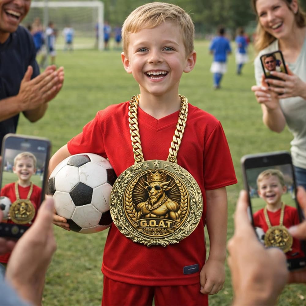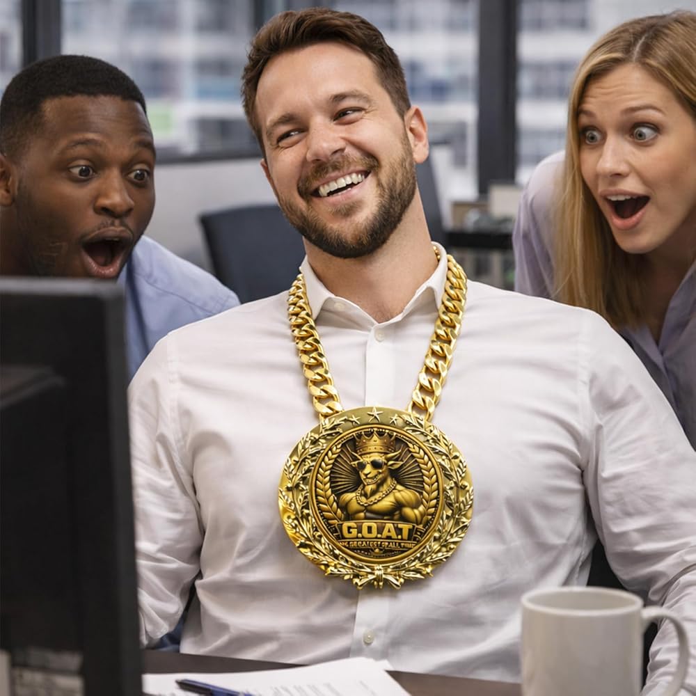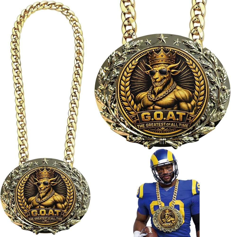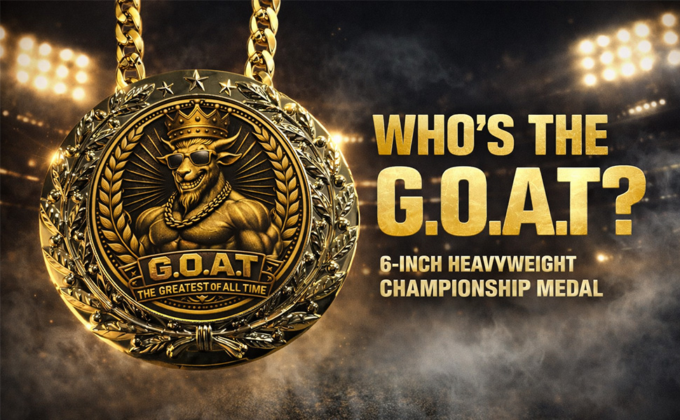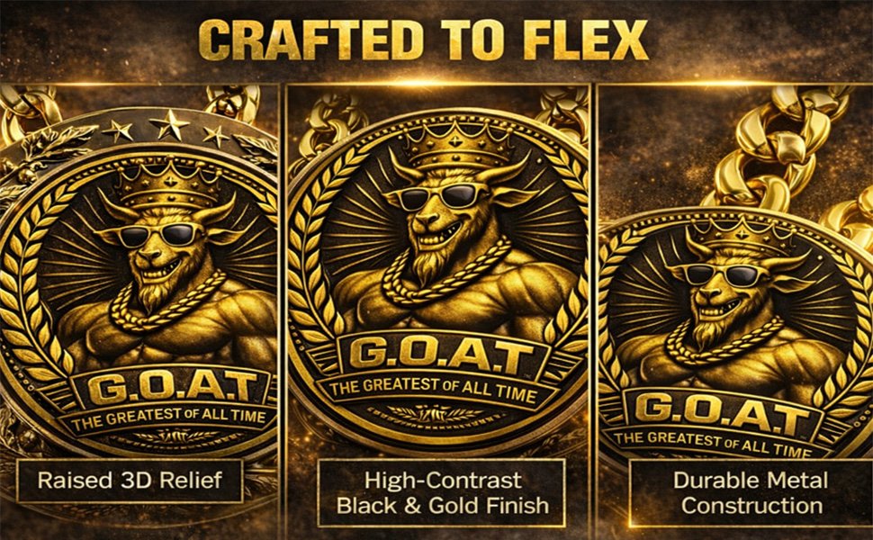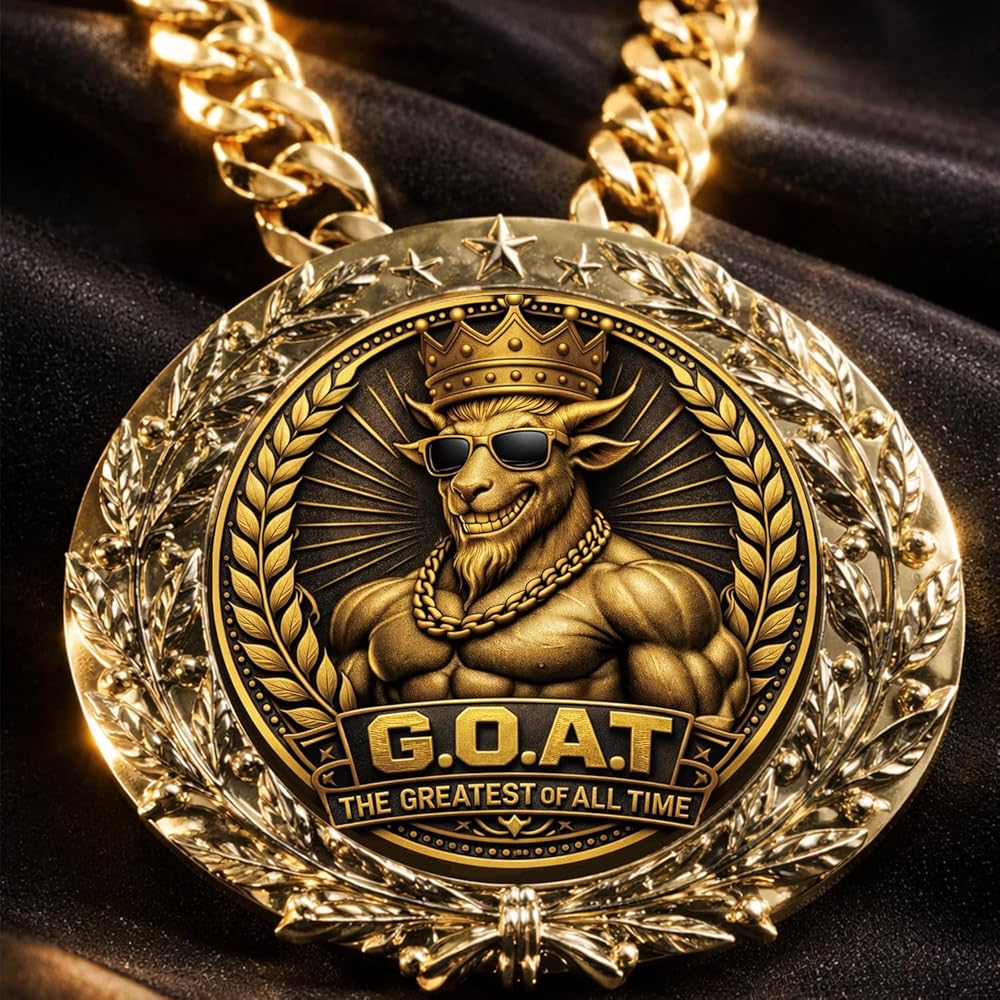 يتميز التصميم الجرافيكي Bold G.O.A.T بماعزة متوجة ترتدي نظارات شمسية، محاطة بإكليل الغار وتفاصيل النجمة - ترمز إلى الثقة والإنجاز والنصر المرح.