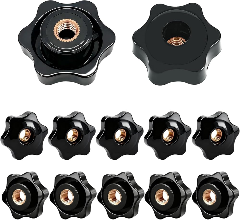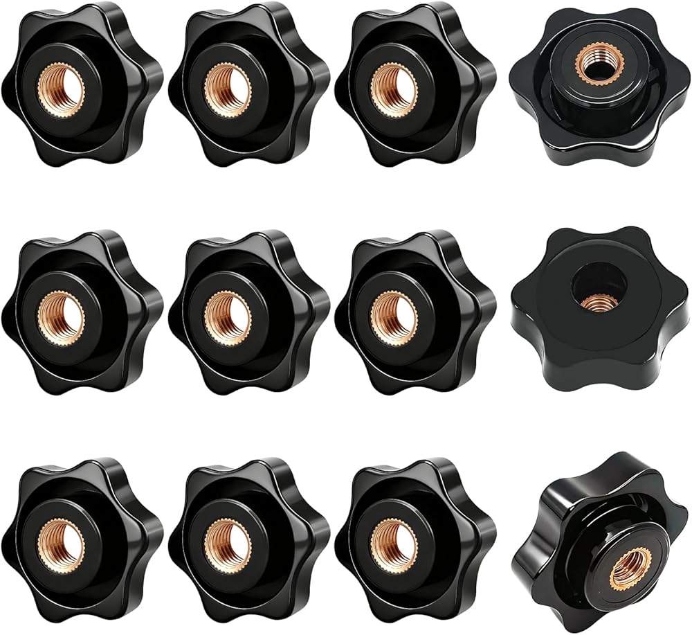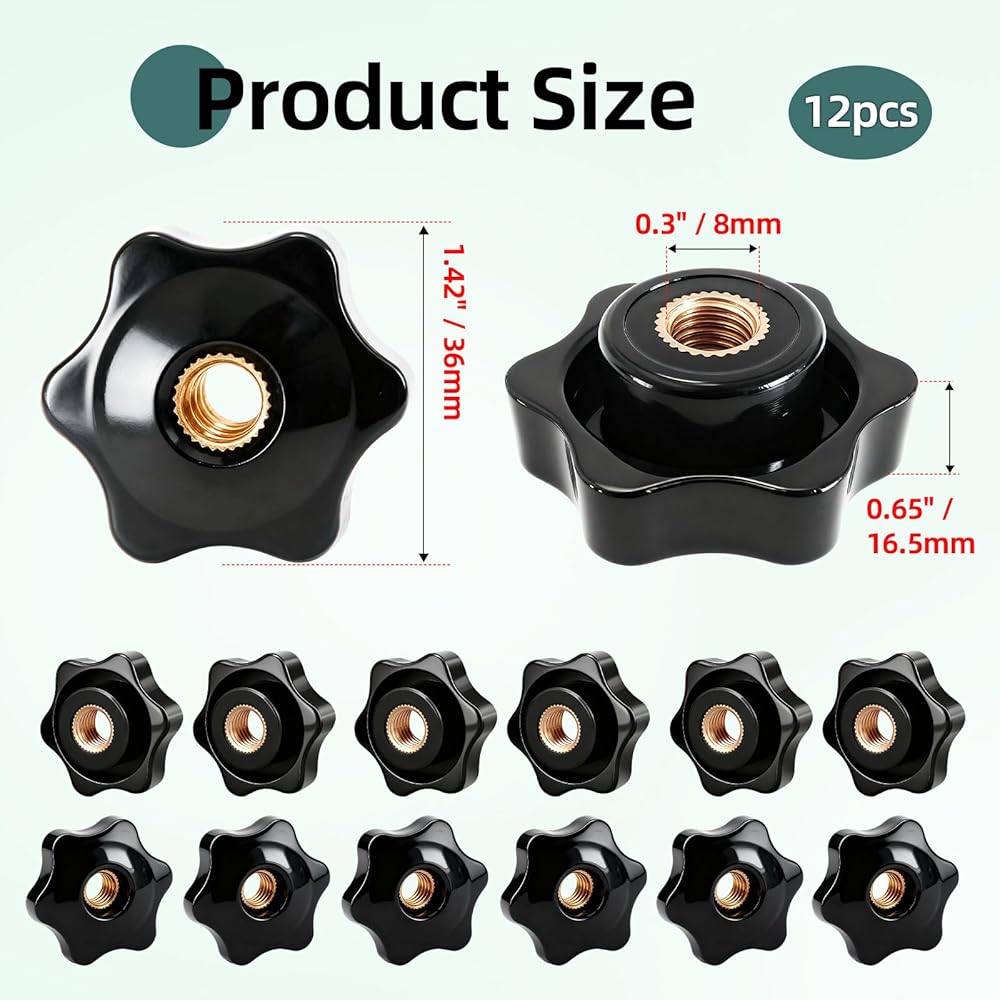 [ Precision Thread Compatibility ]: This set includes 12 knobs featuring standardized M8×1.25 internal threads with brass compression inserts for consistent torque distribution. The open-hole design allows bolts to pass completely through ensure compatibility with industrial equipment.