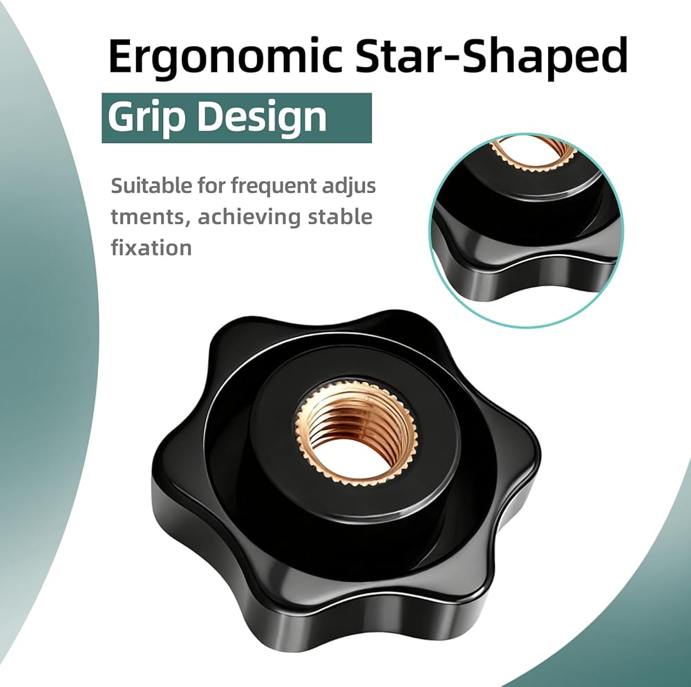 [ Ergonomic Star-Shaped Grip Design ]: The six-point star structure with deep knurling provides greater rotational torque compared to standard knobs. Hand-tightening is sufficient to achieve a secure fastening—making it ideal for frequent adjustments in tight spaces without the need for tools.