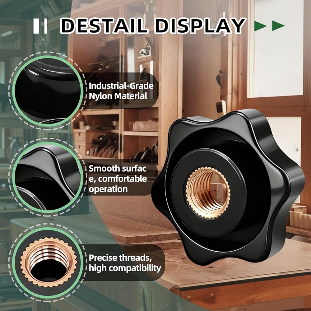 [ Premium Nylon Material ]: Crafted from high-strength nylon with stainless steel reinforcement, these star knobs offer exceptional corrosion resistance and durability. The smooth, burr-free surface ensures comfortable handling even when wearing protective gloves, while the material's UV-resistant properties prevent degradation in outdoor environments.