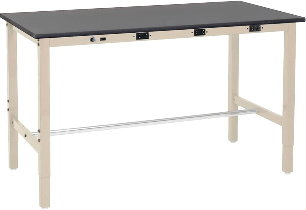 This electric lab bench includes a prewired power apron to provide a convenient power source for electric equipment. These lab benches are used daily in labs throughout the country top quality lab benches are supported by heavy duty 2 square legs made of 14 ga tubular steel. Legs are height adjustable from 28 to 42H at 2 increments making these benches ideal for schools, factories, and more. 5000 lbs capacity. The Weight should be evenly distributed. Prewired power apron for power tools and other electric equipment includes 3 duplex 15 amp/115V outlets, circuit breaker and 13L quickdisconnect power cord. It includes adjustable leveling floor glides and leveling foot plates that allow floor anchoring. Highpressure laminate plastic top withstands rugged daily use. The base is finished with scratchresistant tan powder coating. It ensures quick and easy assembly. This product is ETL/cETL certified. Specifications. Adjustment Type Bolted Leg. Assembly Required Yes. Certifications cETL, ETL. Color Tan. Construction Type Unassembled. Depth 36 in. Edge Type Safety. Height 291/4 411/8 in.. Leg Style Square Tubular Leg. Leg Type Adjustable. Material Steel. Mobile or Stationary Stationary. Nominal Height 29 41 in.. Number of Outlets 6. Power Yes. Power Type Three Duplex 15 Amp, 155 Volt Outlets. Primary Use Laboratory Facilities. Style Power Apron. Top Material Phenolic Resin. Width 60 in.. Warranty 15 Years