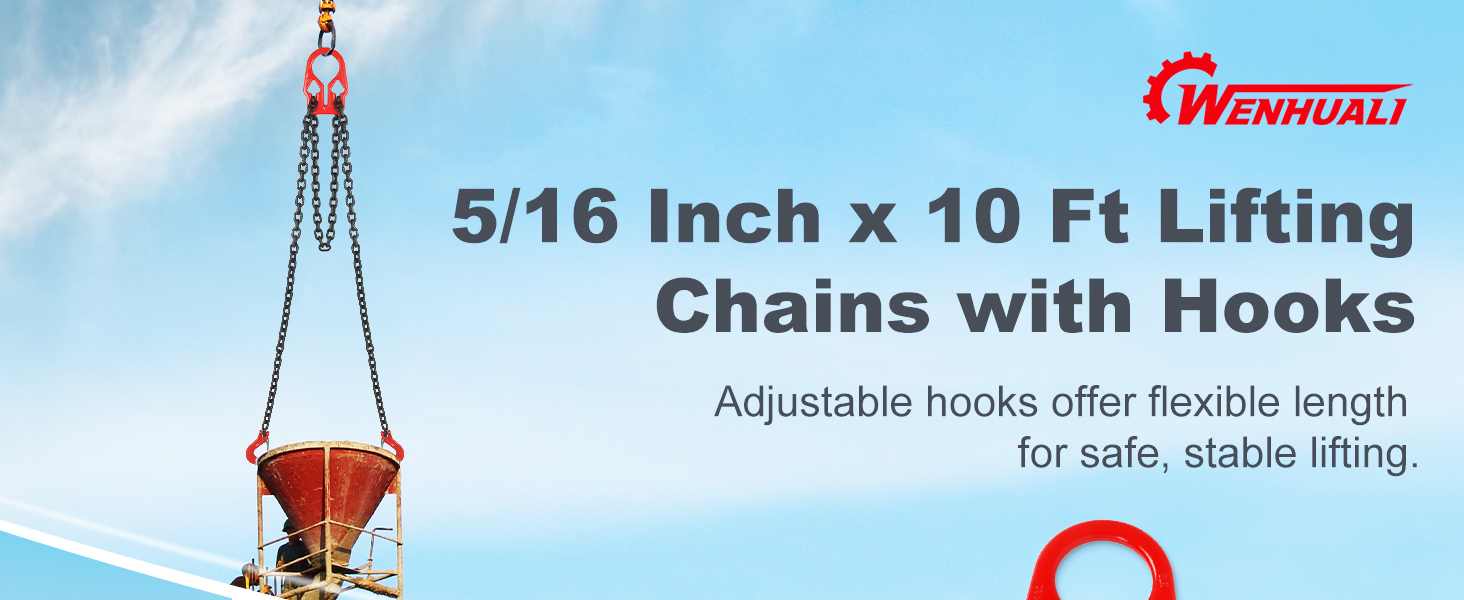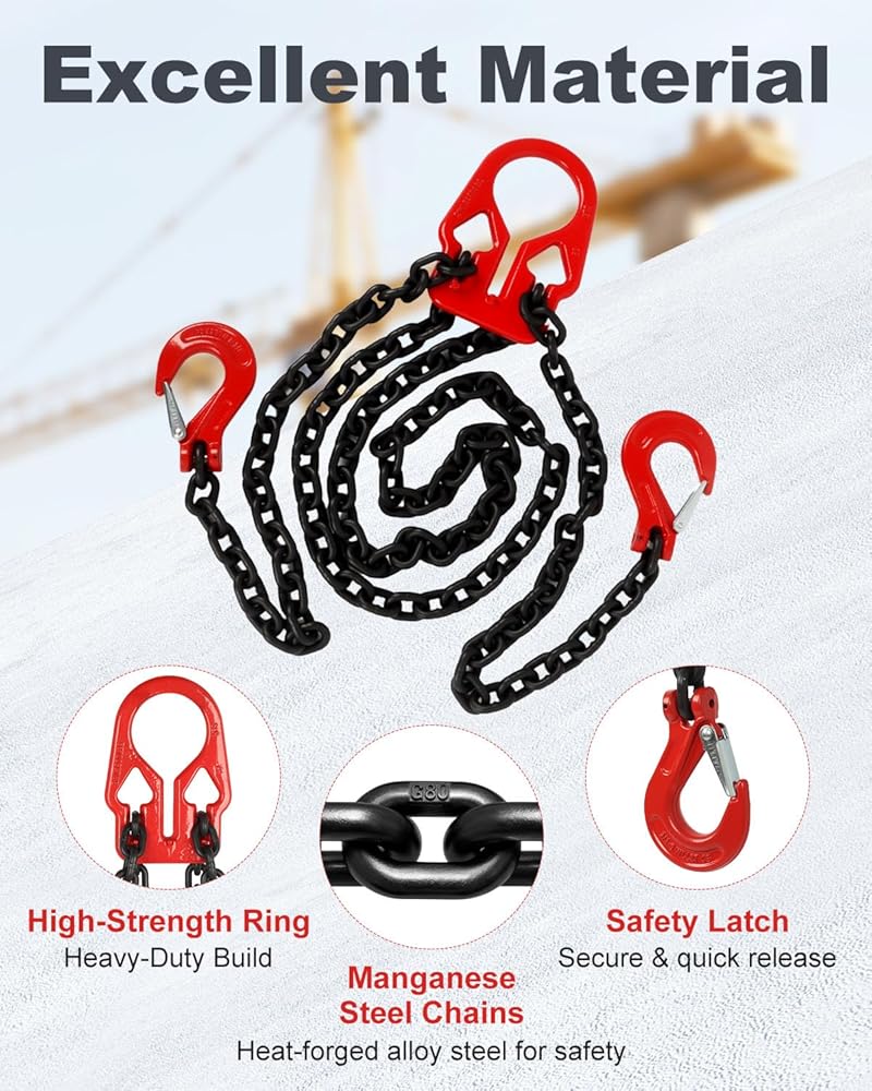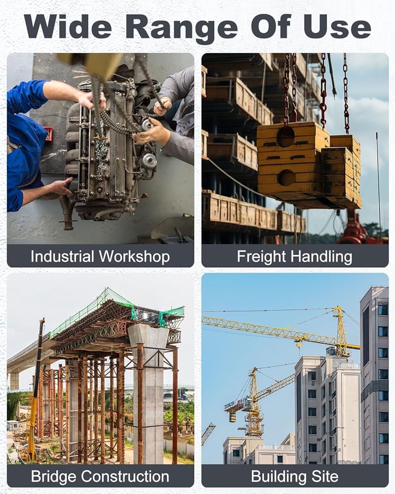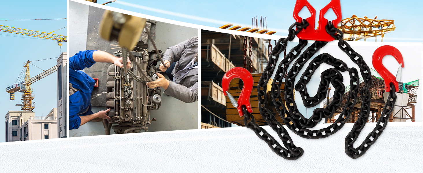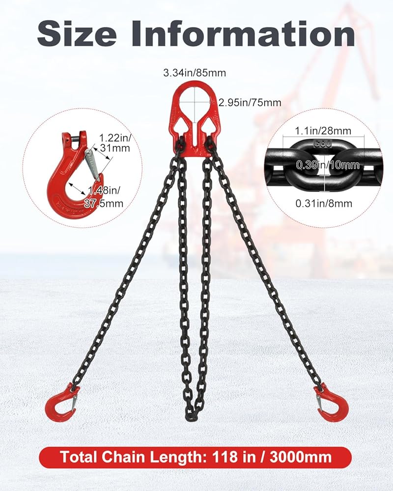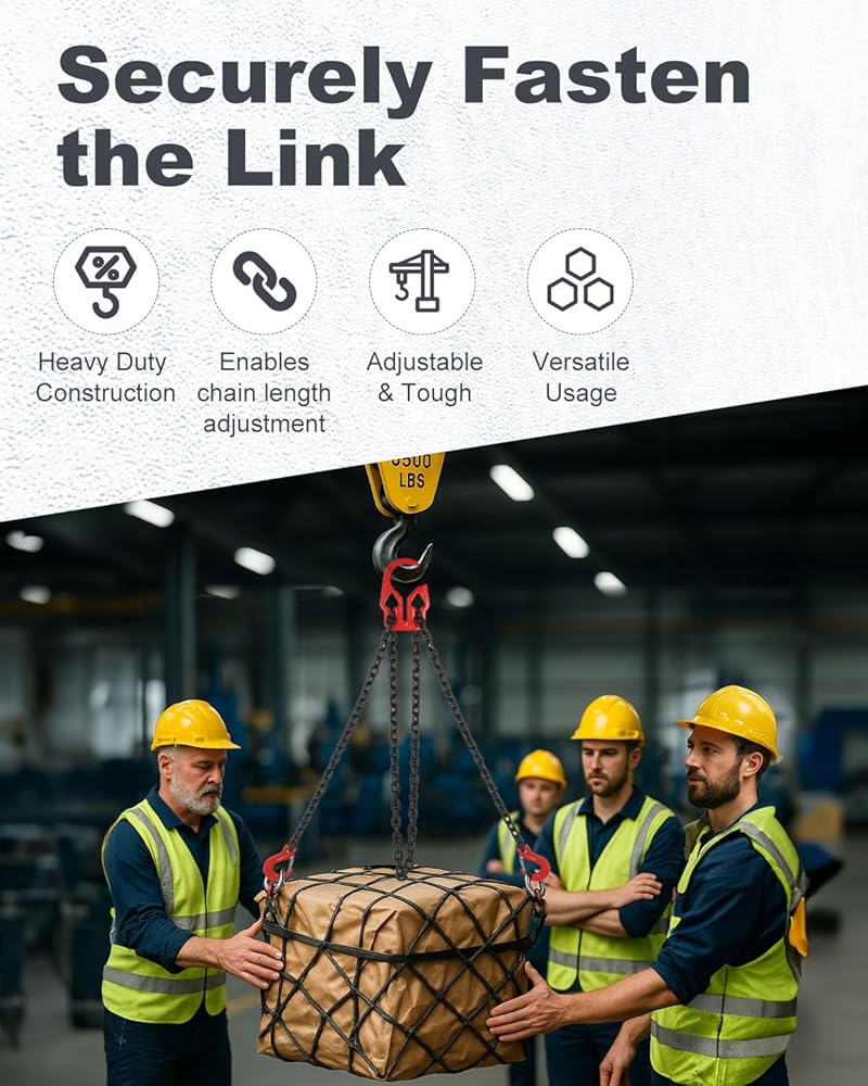 طول قابل للتعديل من أجل المرونة - يمكنك تعديل طول سلسلة 5/16 بسهولة باستخدام أداة الضبط المدمجة، مما يوفر ملاءمة آمنة لارتفاعات الحمل المختلفة. يضمن المرونة والراحة لتطبيقات الرفع المختلفة