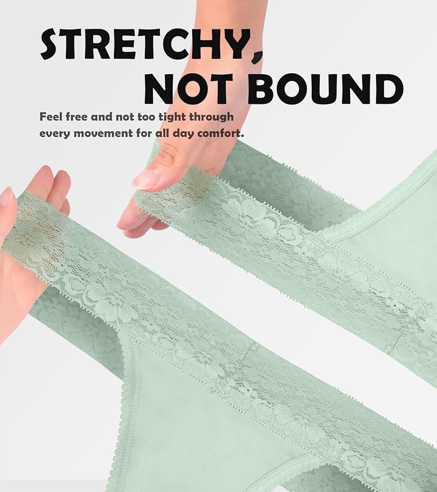 نسيج ناعم ومطاط - سراويل داخلية للسيدات مصنوعة من القطن الناعم ونسيج الدانتيل، وهي خفيفة وملائمة بشكل مسطح على الجسم لتوفير الراحة اليومية. نسيج الدانتيل الناعم الرائع يجعلك أكثر سحرًا وأناقة.