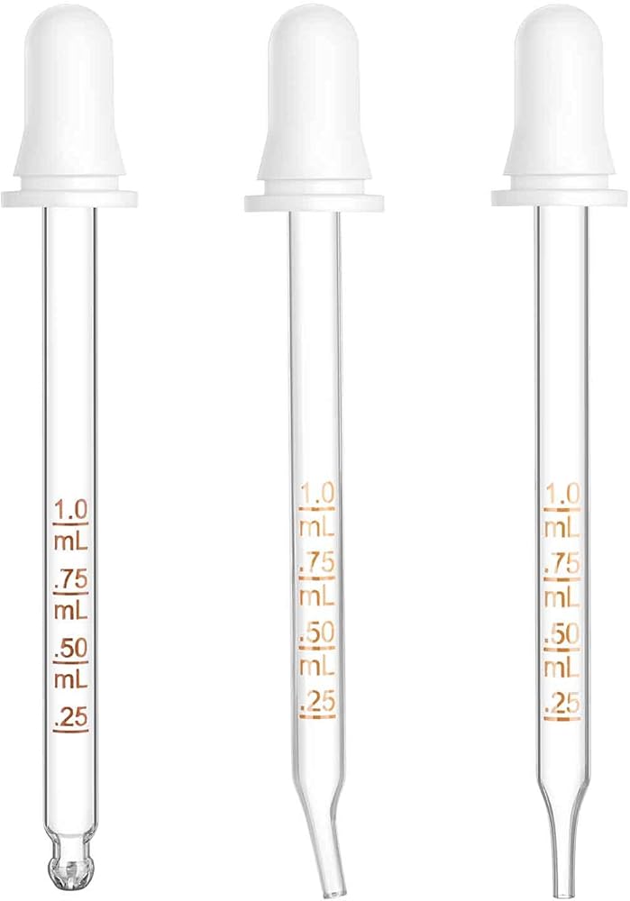 ①Corrosion-proof transparent glass dropper made of high-quality materials and Measurements are etched in glass and will don't wash off.