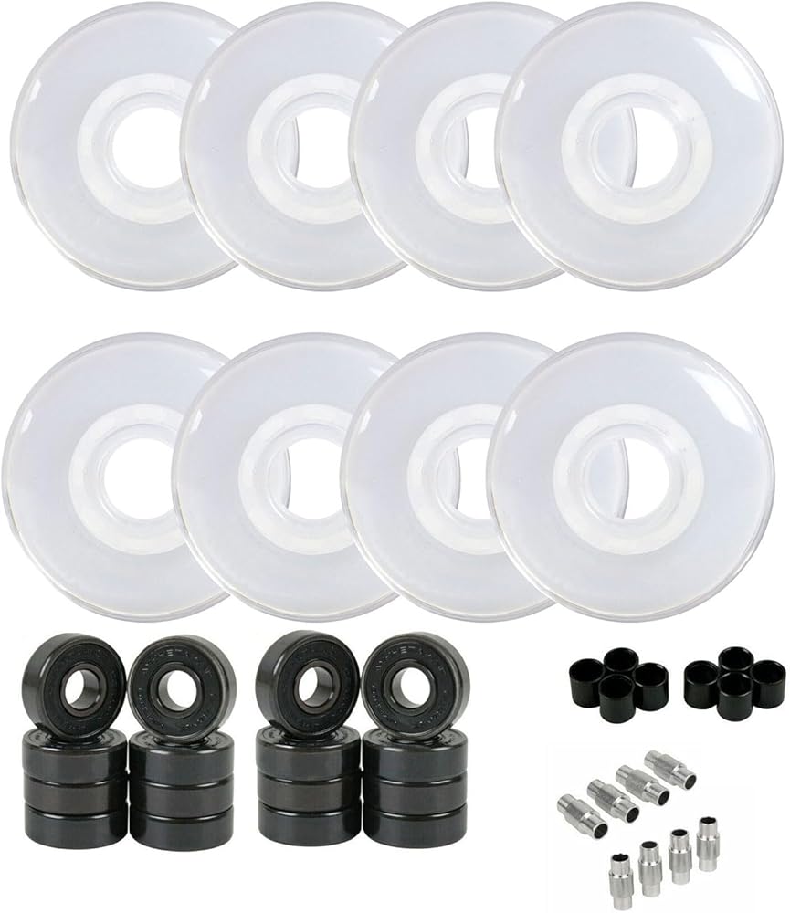 • Includes: 8 Wheels, 16 Hybrid Ceramic Bearings, 8 8mm Floating Spacers, and 8 6mm Stepped Spacers (You only need 1 set of spacers depending on your skates, we inclue both as a courtesy). Please take the time to ensure the wheel specifications on your skates. Many manufacturers use different wheel configurations, but almost all use these 5 basic sizes: 59mm, 68mm, 72mm, 76mm, and 80mm. Measure your current wheels, or check your skate specs to ensure a smooth installation!