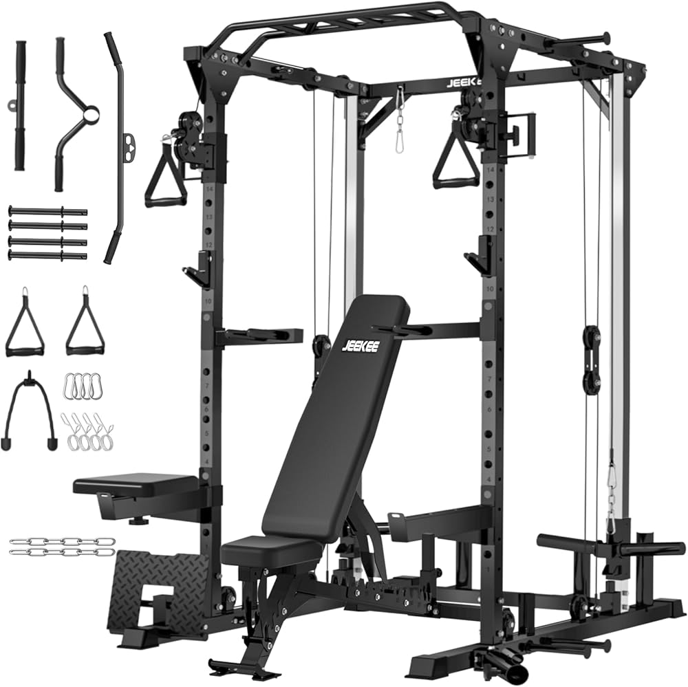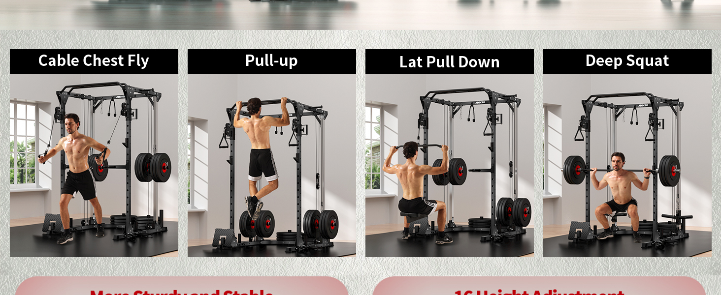 • 【نظام بكرة مزدوج مستقل للتدريب المتقدم】على عكس رفوف الطاقة التقليدية، يتميز قفص الطاقة JEEKEE بنظام كابل مزدوج مستقل، مما يسمح لك بأداء مجموعات فائقة ومجموعات إسقاط وتمارين كروس الكابل دون قيود. توفر البكرات ذات المحمل الناعم مقاومة ثابتة وحركة سلسة، مما يوفر تجربة رياضية منزلية احترافية.