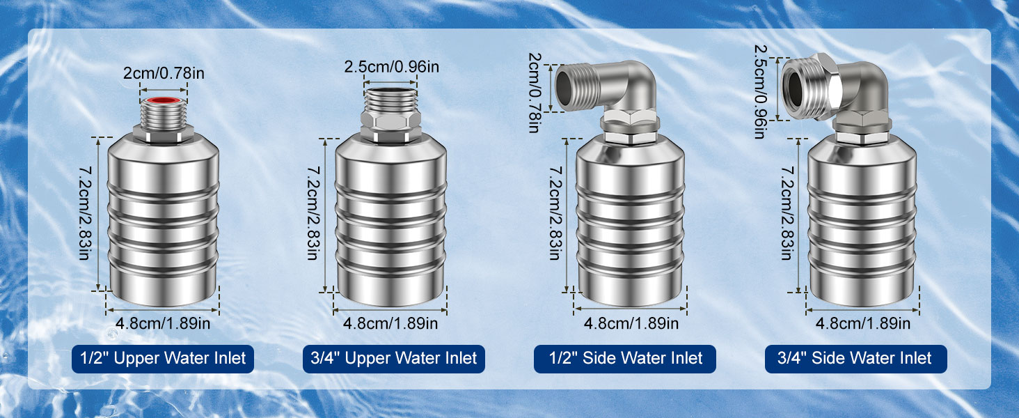💧💧💧قائمة التعبئة: 4 × وحدة تحكم في مستوى المياه، 2 × 1/2 مدخل جانبي، 2 × 3/4 مدخل علوي، 4 × حزام نسيج خام. الكمية كافية لتلبية احتياجات الاستخدام الخاصة بك.