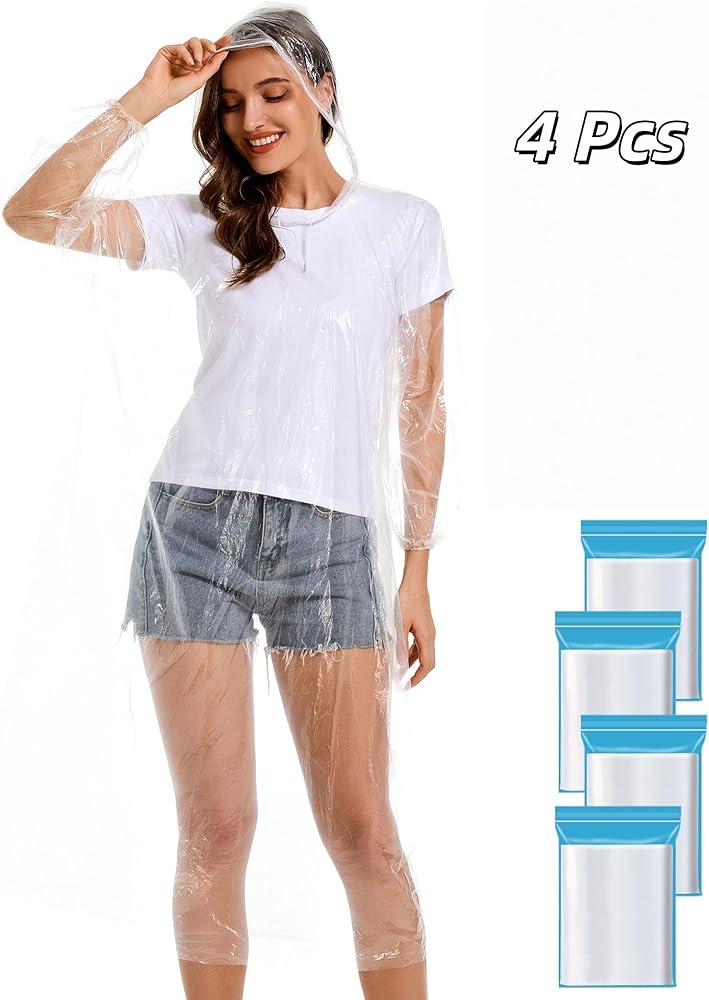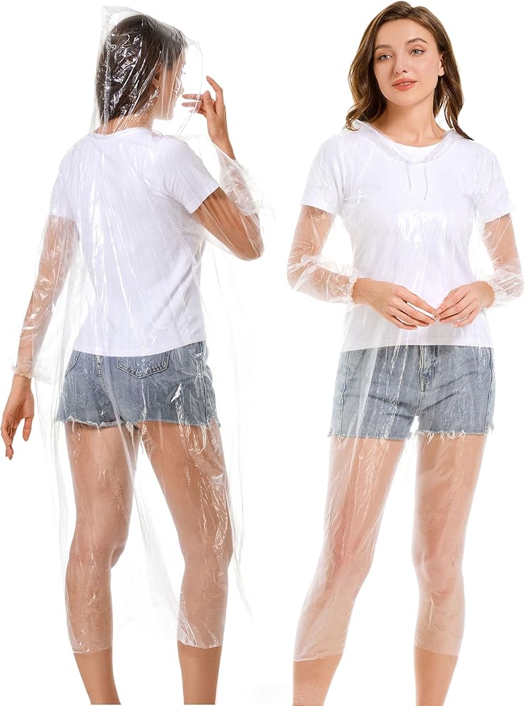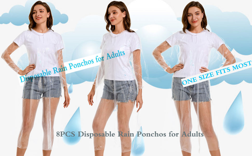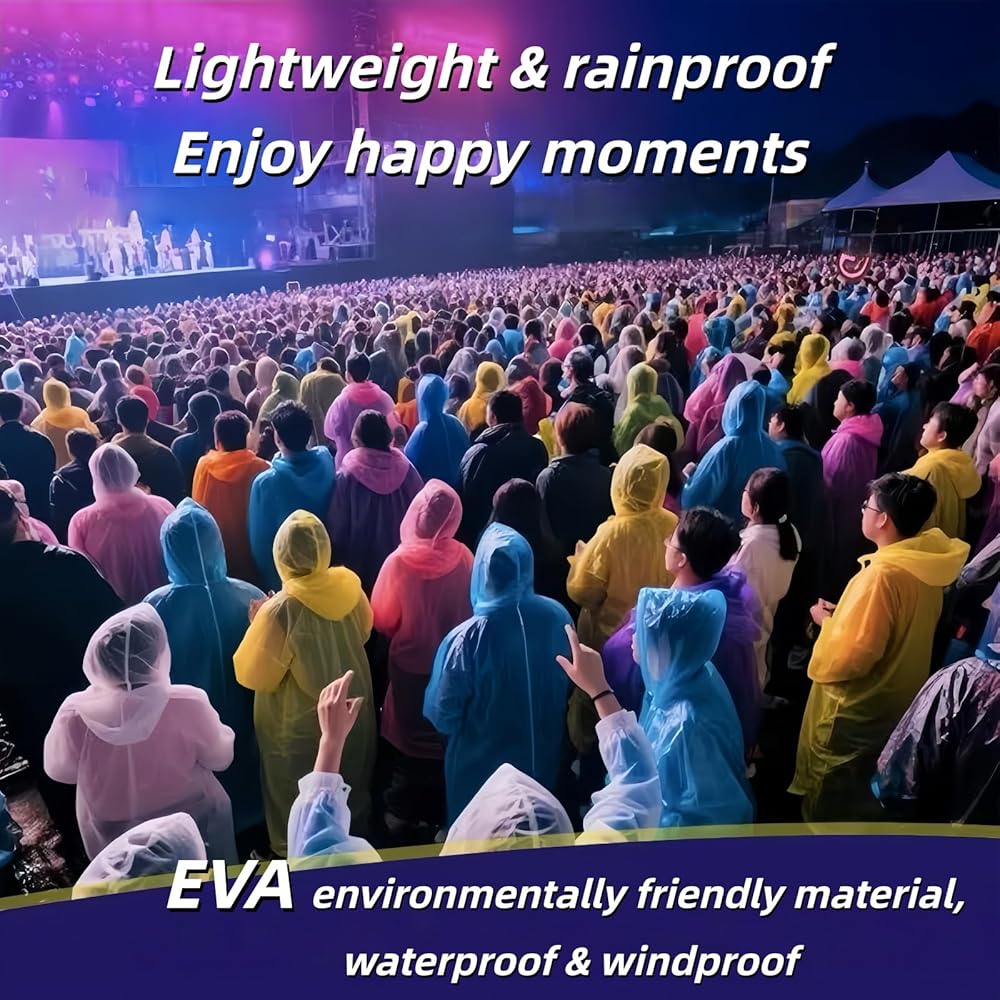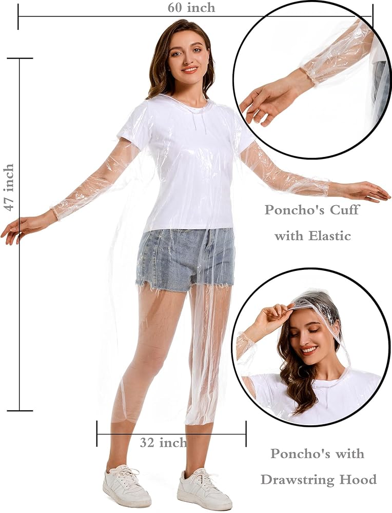 خامة ممتازة: معاطف المطر الخاصة بنا مصنوعة من مادة البولي إيثيلين السميكة عالية الجودة، بسُمك يصل إلى 0.025 مم، خفيفة الوزن ولكنها قوية بما يكفي لحمايتك من هطول الأمطار غير المتوقعة. غير محكم ومقاوم للماء بنسبة 100%، وغير سام، ولا رائحة، وناعم للغاية