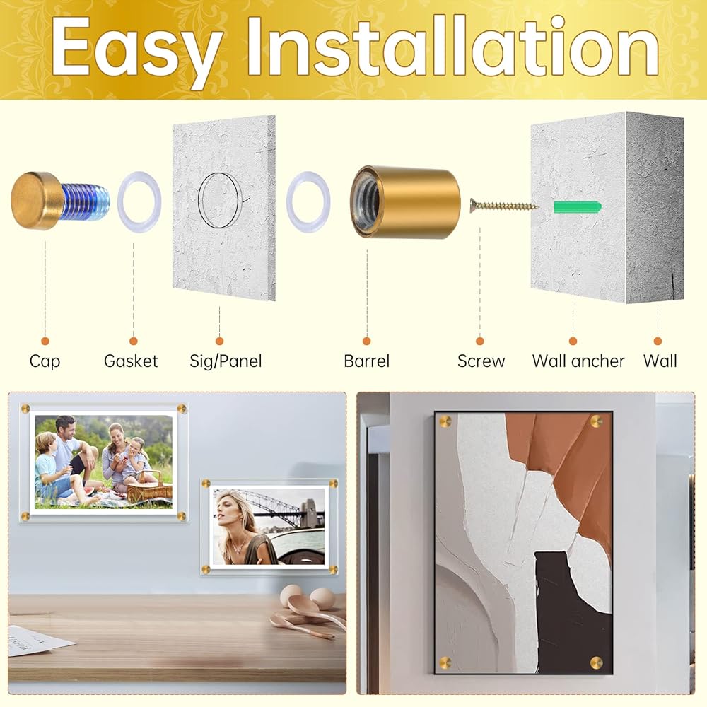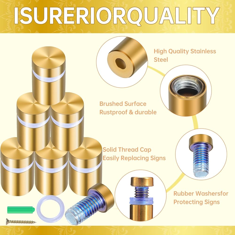 The wall sign standoff screws high quality stainless steel,strong and durable,scratch-proof and corrosion & rust resistance,very easy to use, bringing you much convenience in your daily life.