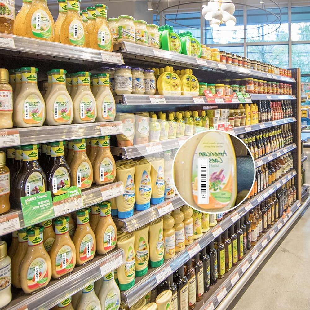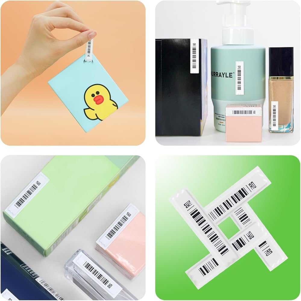 • تطبيق واسع --- الملصق رقيق مثل قطعة من الورق، ومناسب لملصقات الملابس وزجاجات منتجات العناية وتغليف الكرتون والسلع الأخرى. بشكل عام يمكن استخدامها في مراكز التسوق ومحلات السوبر ماركت وأماكن البيع بالتجزئة الأخرى. لاحظ أنه لا تقم بلصق المادة المعدنية على المنتج.