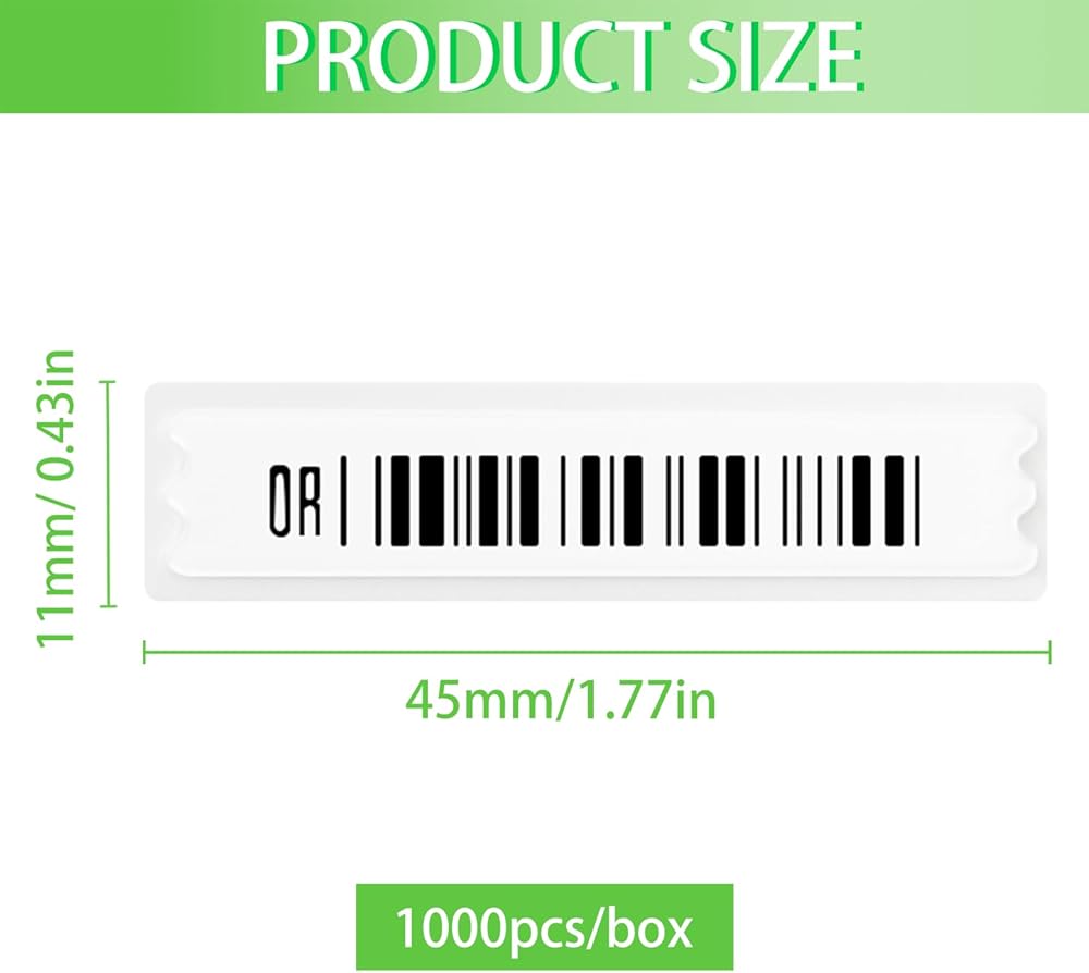 ملصق ملصقات أمان 58 كيلو هرتز، 1000 قطعة من الباركود المزيف، حزمة ملصقات باركود وهمية، علامات أمان، ملصقات ناعمة مع رموز شريطية وهمية لمعدات مكافحة السرقة للبيع بالتجزئة