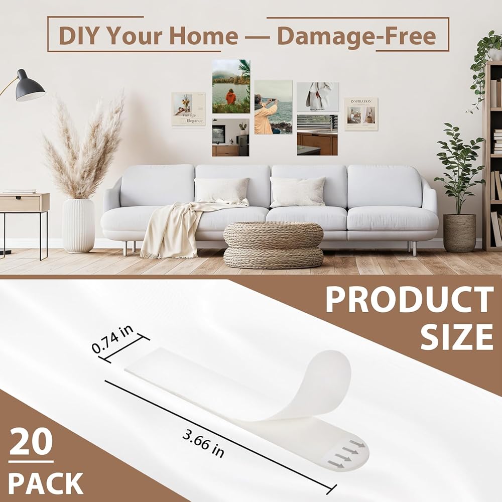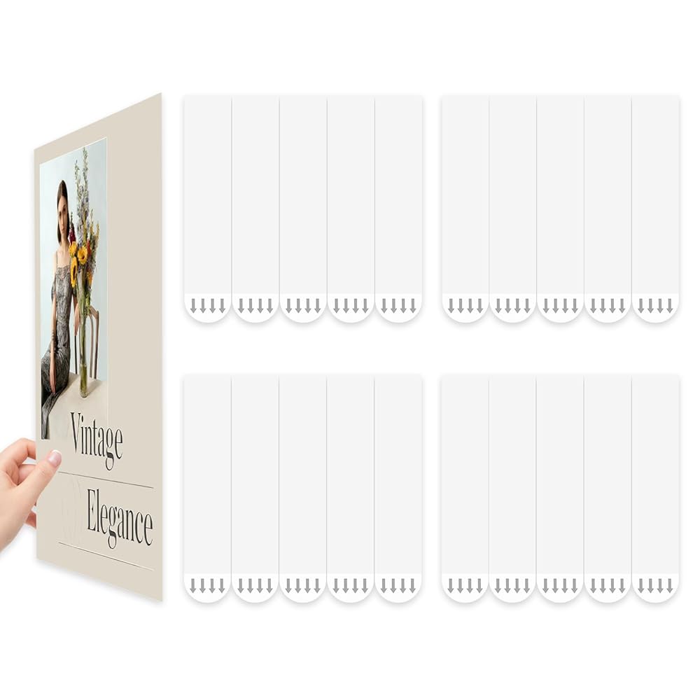 【Picture Hanging Strips】20-piece pack of hanging strips for posters — 4 inches long, 0.67 inches wide. Replaces nails or liquid glue. Stronger adhesion than double-sided tape.