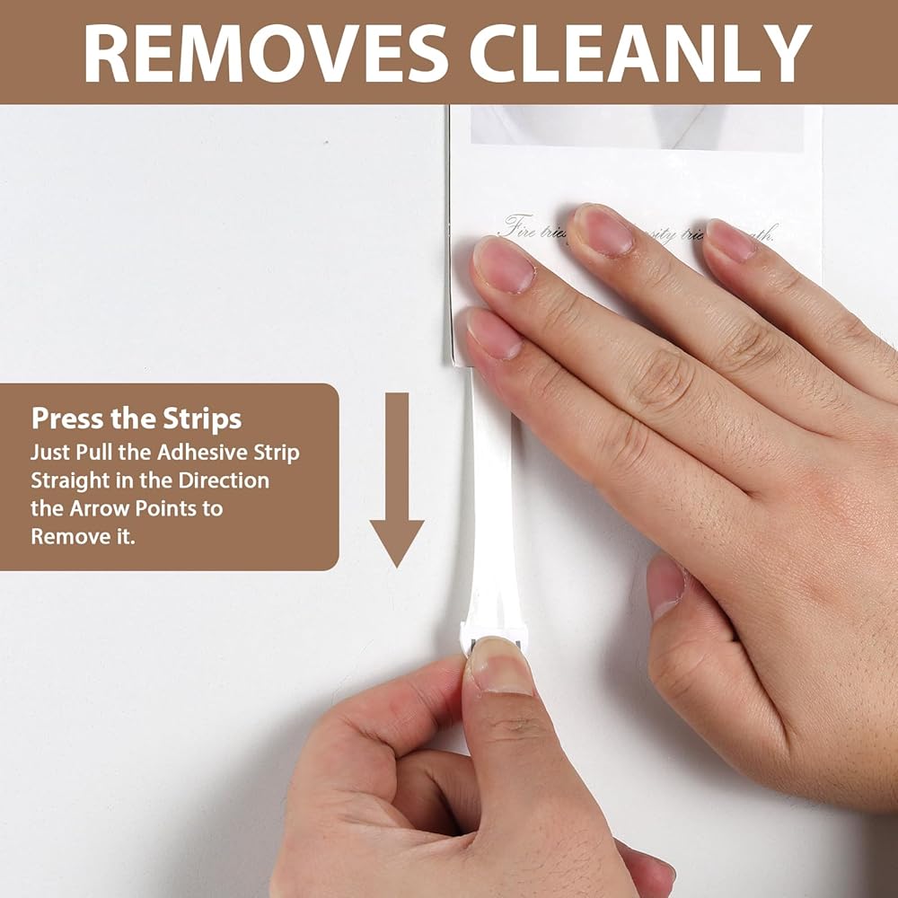 【Damage-Free Hanging】 The surface where picture hanging strips have been used won't be damaged, won't leave any traces or sticky residue, and won't affect future reuse of that surface — it's a great choice for hanging decorative items.
