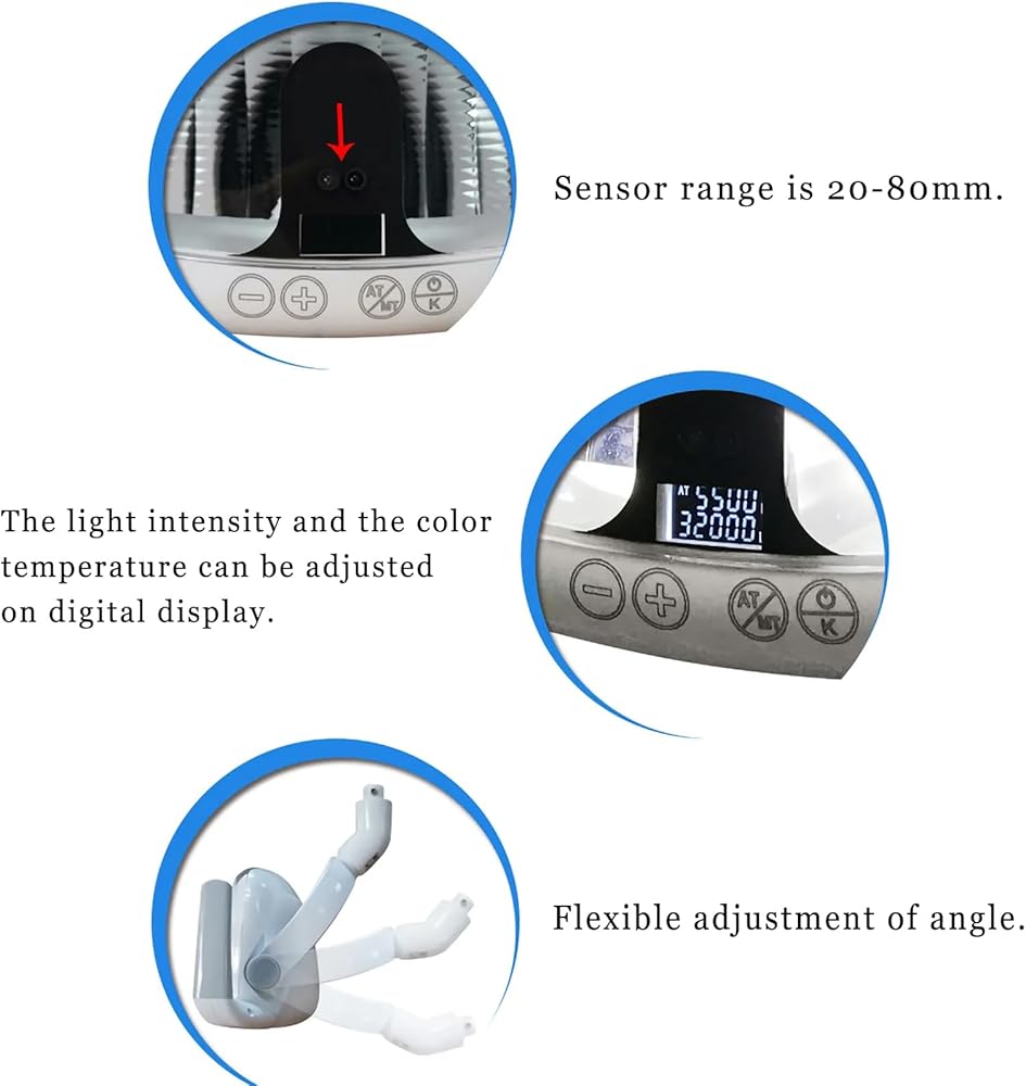 • 【Premium Luminance】: The LED dental lamp can reach stepless adjustable. Light efficiency is higher, the illuminance can reach over 35000lux when the power is 6W.