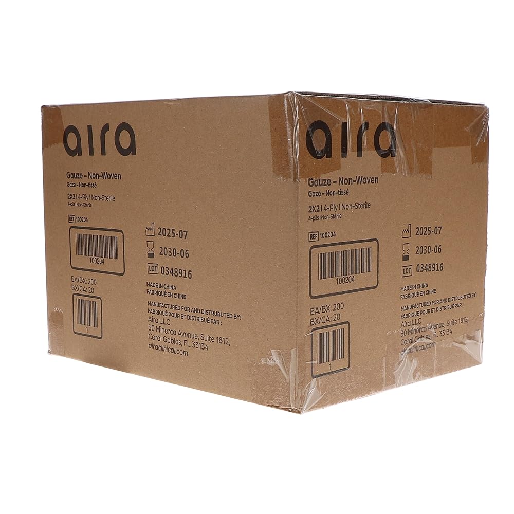 شاش Aira 100204 غير منسوج، 4 طبقات، 2 × 2 بوصة، غير معقم 4000/Cs