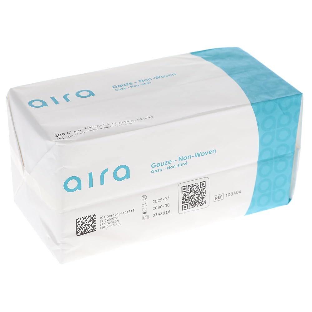 Aira 100404 Non-Woven Gauze 4" X 4" Non-Sterile 4-Ply 2000/CsNon-Woven Gauzes are economical, non-sterile pads for various indications such as applying ointments, prepping, and wiping instruments and equipment without leaving any lint. These 4-ply superabsorbent gauzes provide reliable strength and are crafted from soft material to prevent scratching surfaces.