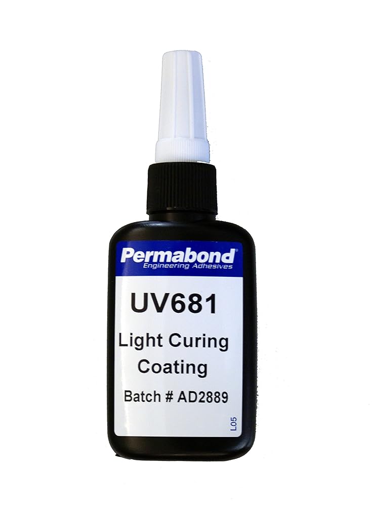 Permabond UV681 is a versatile UV-curable clear coating designed for precision applications. This low-viscosity formulation flows smoothly to create bubble-free, optically clear coatings ideal for electronics protection and smart card microchips. With its rapid curing capability under various UV light sources, this coating offers excellent control over the application process. The cured coating provides impressive tensile strength of 1450-1700 psi and maintains 60% of its strength at 212°F. Its outstanding light transmittance of over 98% ensures crystal-clear results, while the Shore D hardness of 50-65 delivers reliable protection. The coating's tack-free surface and ability to resist wave-soldering make it particularly suitable for electronic components. This 100% solids formulation can be cured using different UV sources, from low-power battery lamps to high-intensity LED systems, offering flexibility in production environments.