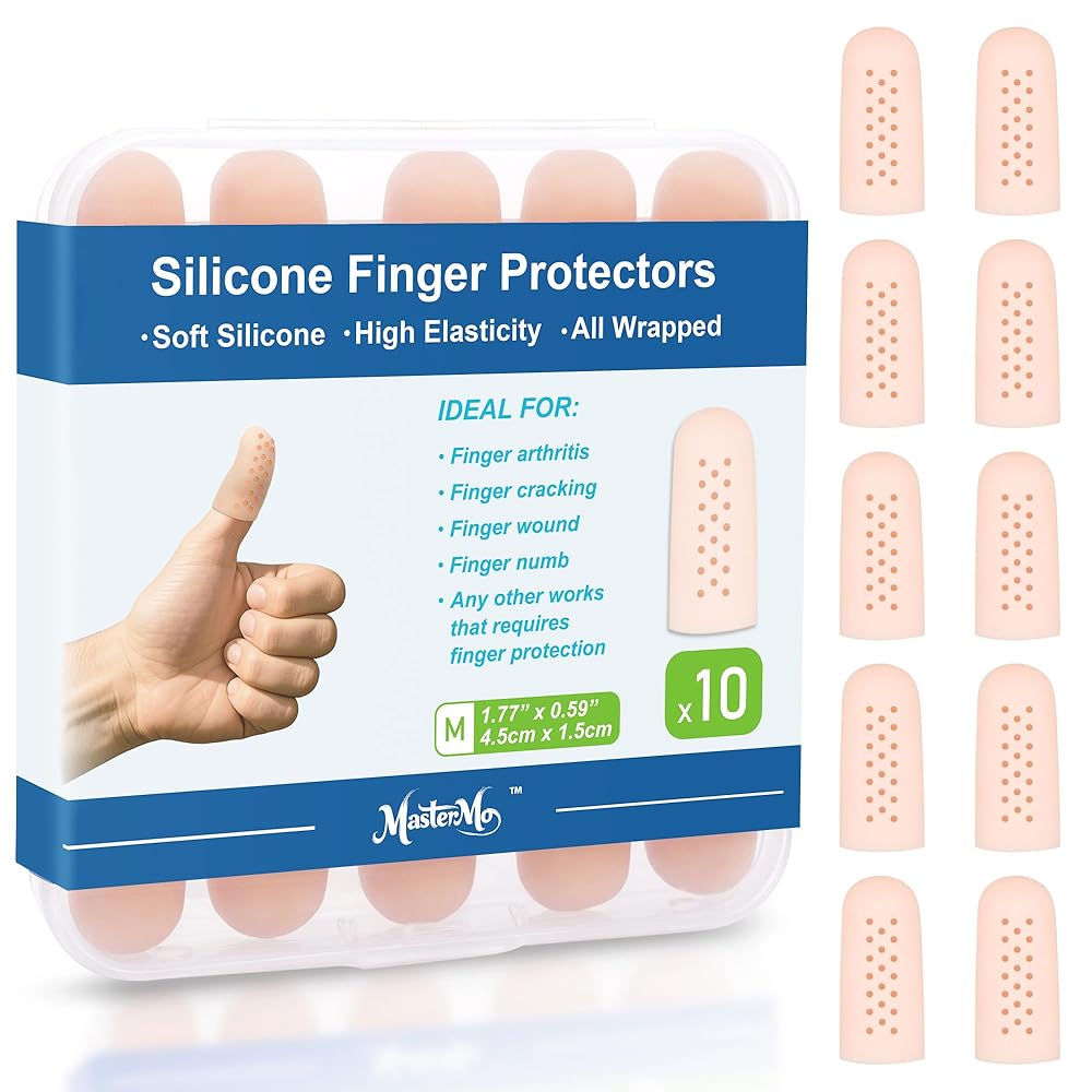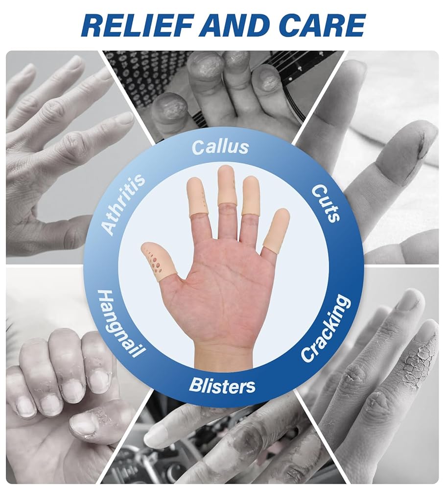 واقيات جل للأصابع مع فتحات هوائية، أغطية أصابع من السيليكون، أغطية وأغطية لحماية أطراف الأصابع، مثالية للزناد، والتهاب المفاصل، والتشقق، والبثور، والكالس، والأظافر وتخفيف الألم (عاري، متوسط، 10 قطع)