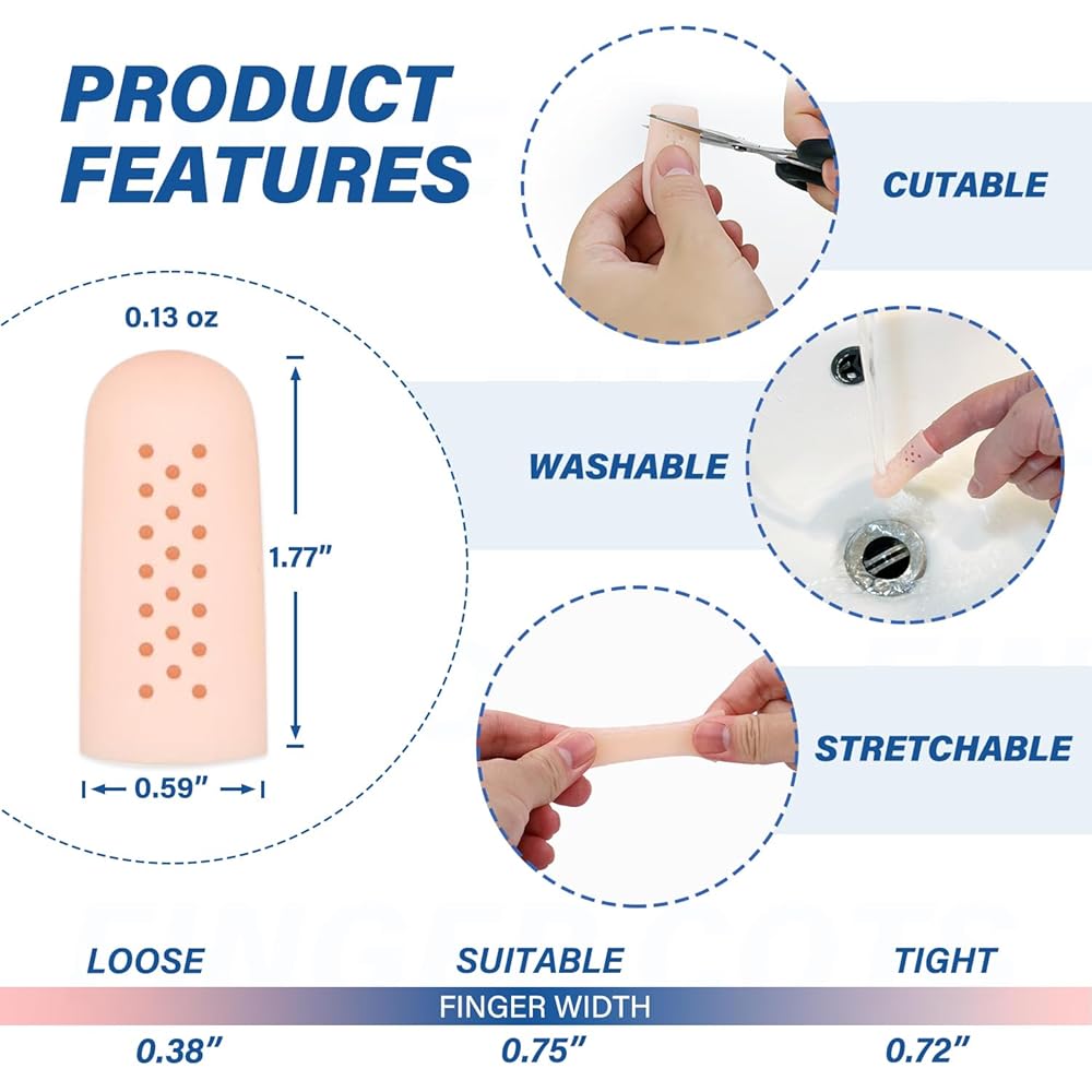 • ❤ 【متفوقة على الضمادات التقليدية 】 وراء التغطية البسيطة ، التصميم المبتكر لأغطية الأصابع يهدئ ويرطب بشرتك. قابلة لإعادة الاستخدام، وغير سامة، وعديمة الرائحة، وخالية من اللاتكس، توفر هذه الواقيات رعاية موثوقة - غسيل وتجفيف وإعادة الاستخدام لراحة دائمة.