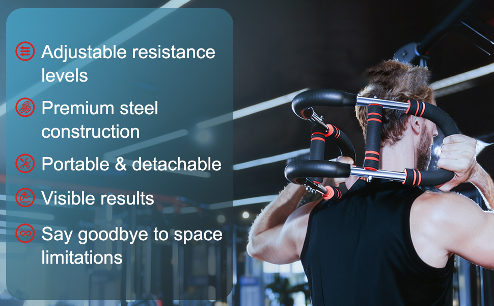 تصميم محمول وموفر للمساحة: تم تصميم جهاز تدريب العضلات القوي هذا بحيث يمكن فصله للتجميع السريع والتخزين المدمج - بحيث يتناسب بسهولة مع حقائب الظهر أو حقائب السفر. إنه خيارك الأمثل للتمارين المنزلية أو جلسات استراحة المكتب أو البقاء نشيطًا أثناء السفر، مما يساعدك على الحفاظ على روتين لياقة بدنية ثابت بغض النظر عن مكان وجودك.