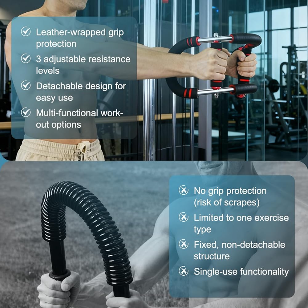 محمول وسهل الاستخدام: لا توجد حاجة لأي أدوات - يتم تجميع مدرب العضلات الملتوي هذا في 30 ثانية فقط، بفضل التعليمات الواضحة خطوة بخطوة. يتضمن أيضًا ملصقًا تفصيليًا للتمرين يحتوي على أكثر من 8 حركات مستهدفة (مثل الضغط على الصدر ولف الذراع)، حتى يتمكن المبتدئون من إتقان الشكل المناسب بسرعة - لا حاجة إلى إرشادات إضافية أو رسوم نادي اللياقة البدنية لبدء رحلة تمرين الجزء العلوي من الجسم.