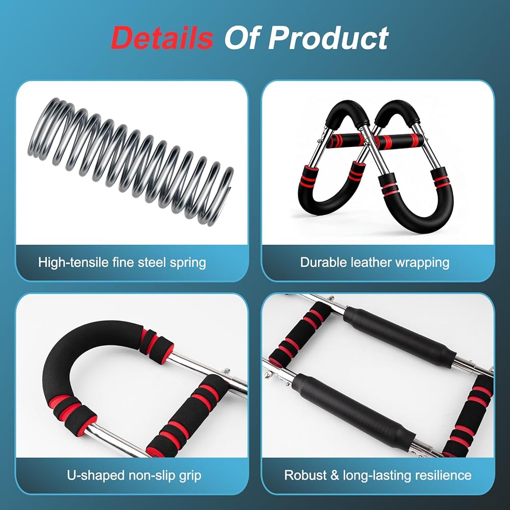 تصميم محدث للسلامة والراحة: يتميز مدرب الصدر الخاص بنا بمقاومة زنبركية من الفولاذ عالي الكربون (مصنوع لاستخدام اللياقة البدنية) ومقبض مغلف بالإسفنج على شكل حرف U: يوفر الزنبرك مرونة قوية، بينما يعزز الإسفنج المنسوج الإمساك لمنع انزلاق العرق، وهو مثالي لجلسات تدريب الجزء العلوي من الجسم لفترات طويلة.