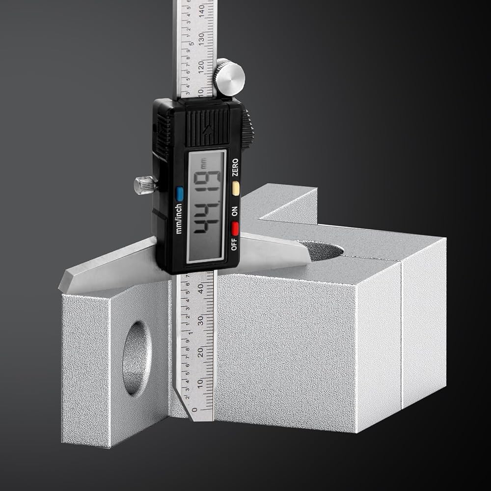إعداد صفر مريح: يتميز مقياس العمق بإعداد "0" في أي موضع، مما يسمح بإجراء قياسات سهلة وتعديلات سريعة بين المليمترات والبوصة، مما يلبي احتياجاتك الخاصة.