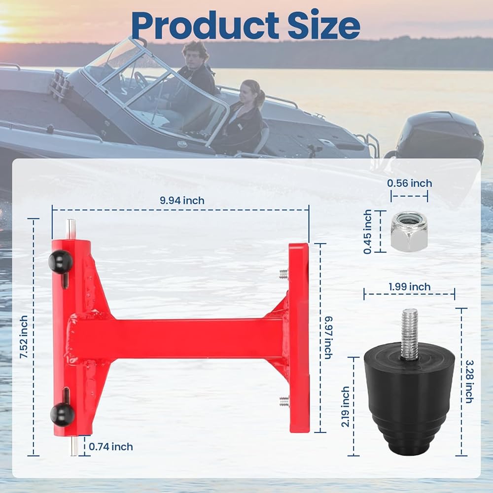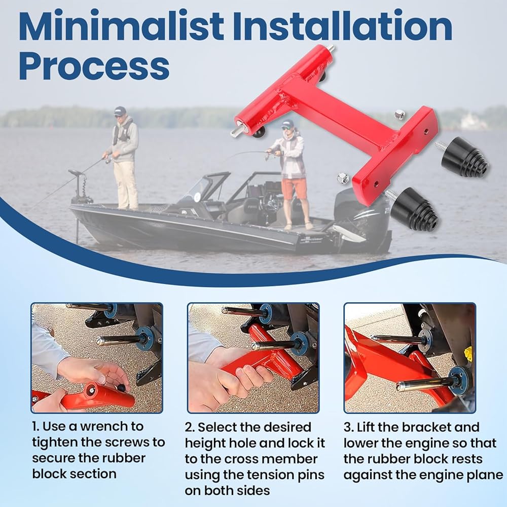 【عملية تركيب بسيطة】عملية التثبيت بسيطة للغاية: يتم تثبيتها على مؤخرة القارب بواسطة دبوسين للشد (اختر الفتحات المرغوبة لضبط الارتفاع). قم بمحاذاة دعامة الدعم بالجزء الخلفي من دعامة التثبيت الخارجية، ثم قم بخفض المحرك وسيتم تركيب الوسادة المطاطية على الجزء المسطح من المحرك