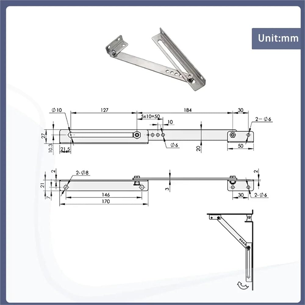 جهاز تحديد من الفولاذ المقاوم للصدأ مع قضيب دعم للخزائن الكهربائية وأبواب ونوافذ قابلة للطي مناسبة قطعة واحدة