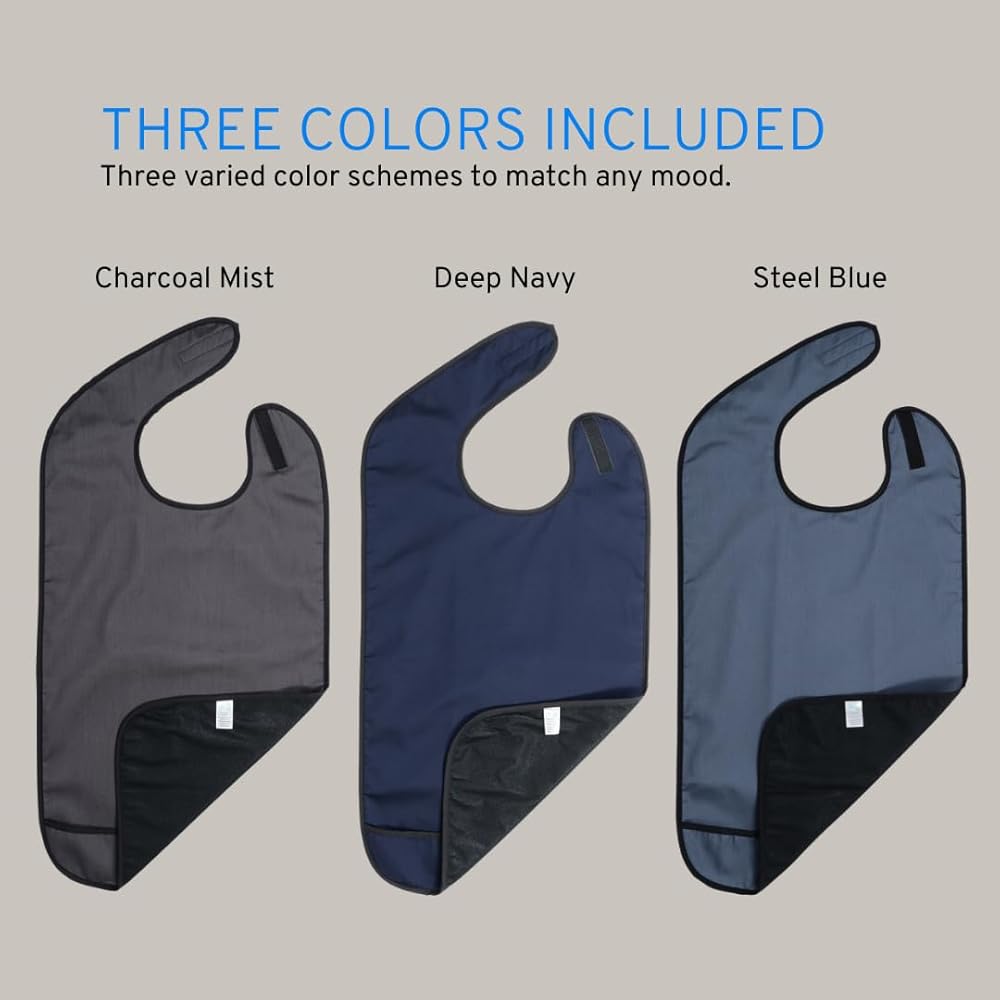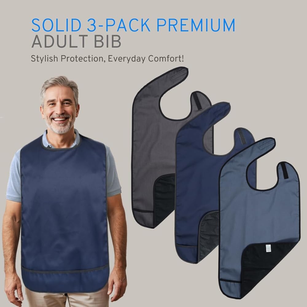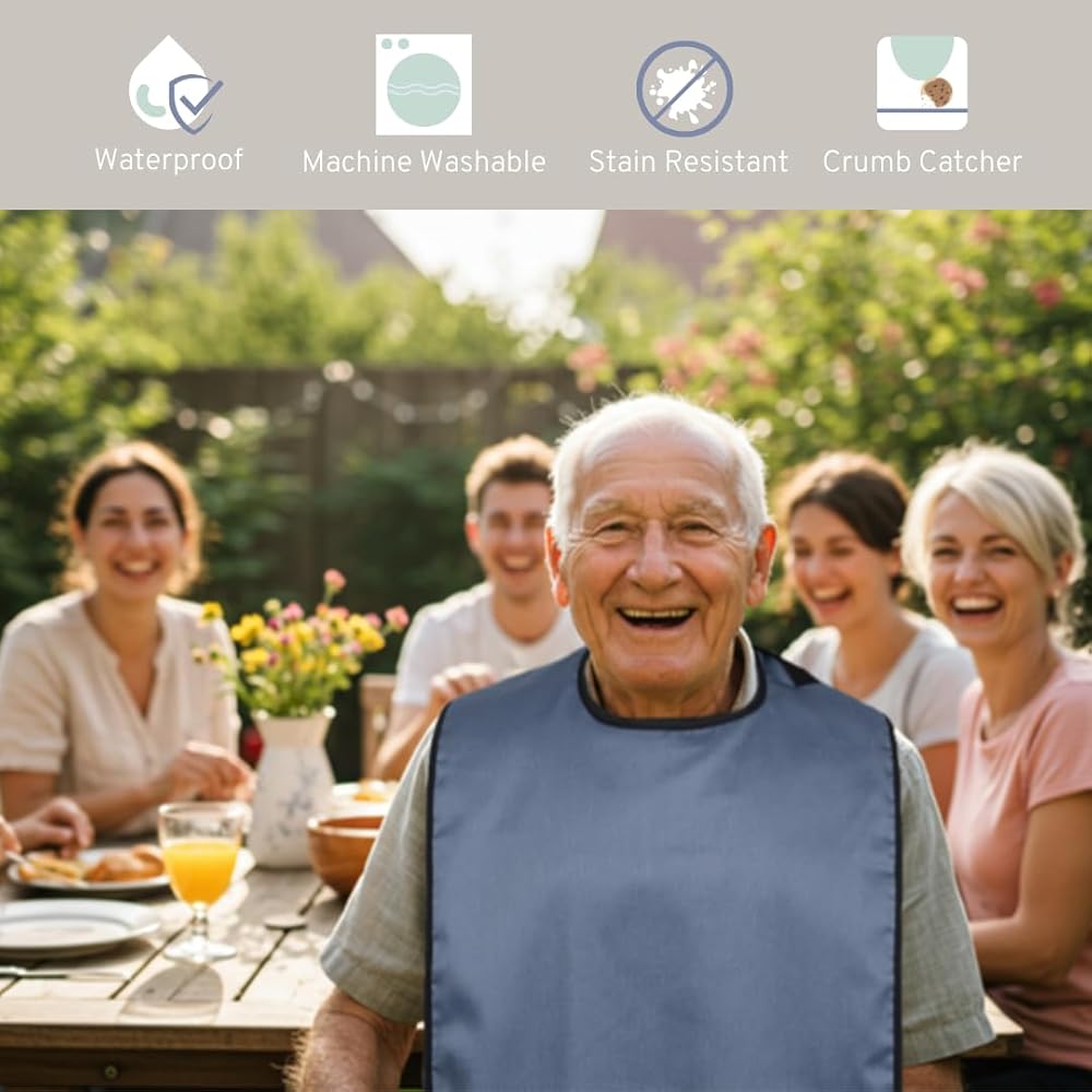 تصميم سري ومحترم يعزز الثقة في وقت تناول الطعام - على عكس المرايل كبيرة الحجم أو ذات المظهر الطبي، يمتزج واقي ملابس البالغين الأنيق هذا مع ملابسك ويخفي البقع بشكل سري. مصمم لكل من الرجال والنساء، فهو يساعد على استعادة الثقة والكرامة أثناء الوجبات المشتركة.