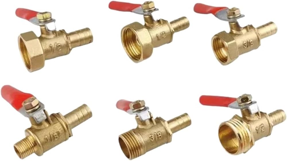 - 1pcs Brass Barbed ball valve 1/8 3/8'' 1/4'' Male FemleThread Connector Joint Copper Pipe Fitting Coupler Adapter 8/10/12mm Hose Barb