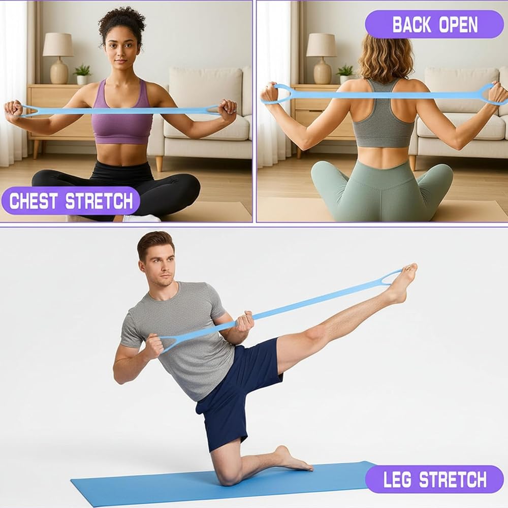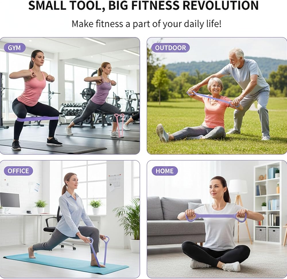 1. This elastic bands for exercise also can be used as an auxiliary tool for daily workout stretching exercise.use the 8 shaped resistance band to perform chest expansion,stretching,and hip lifting.Help you get in shape,position your body,or strengthen your legs,arms,and feet enhances all aspects of Health.