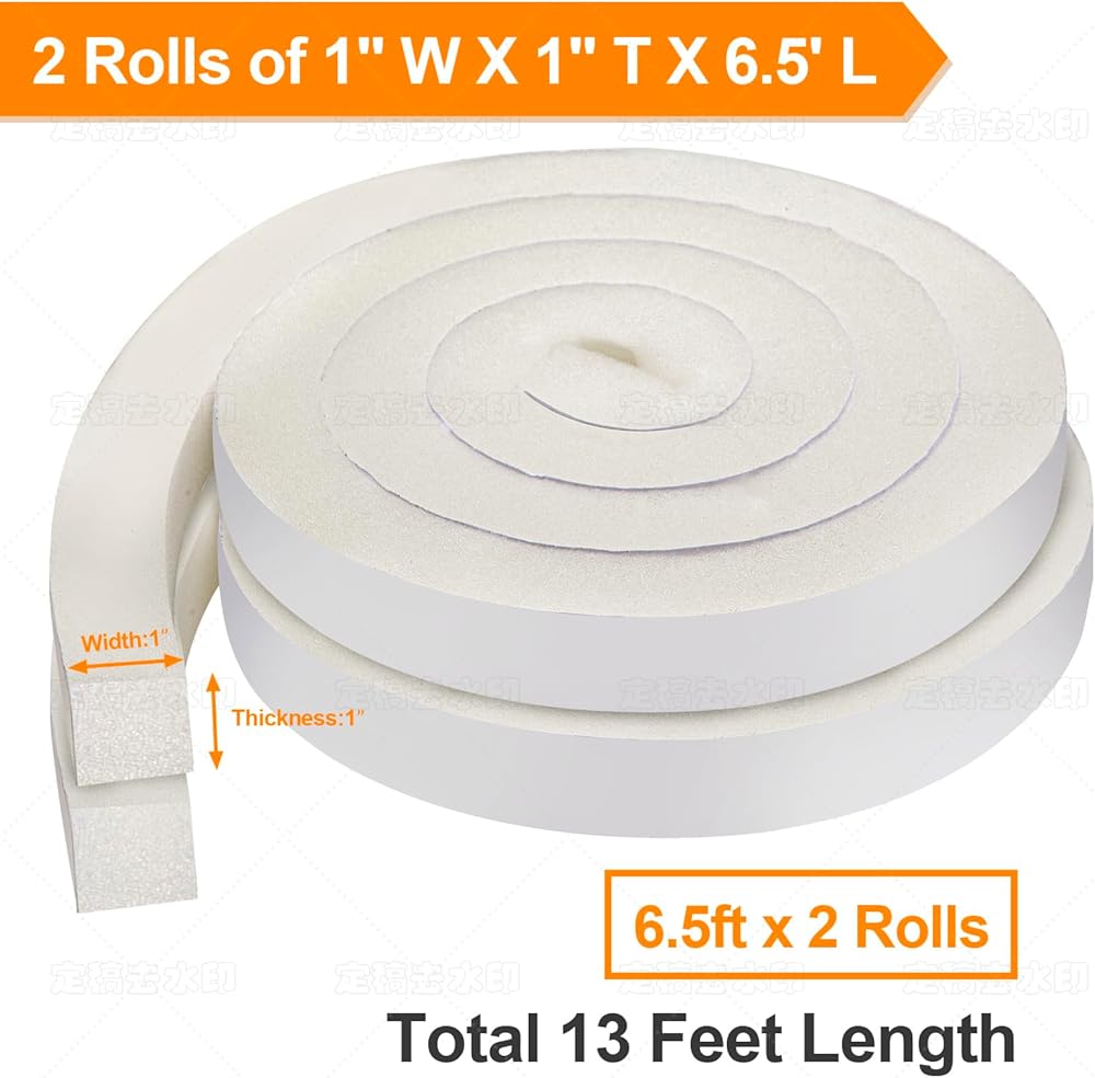 【2 Rolls Open Cell Foam Strip】The insulating foam kit includes 2 Rolls of 1" W X 1" T X 6.5' L foam tape, (6.5ft x 2 Rolls) Total 13 Feet Length. Soft enough to be customized into different size and shape.