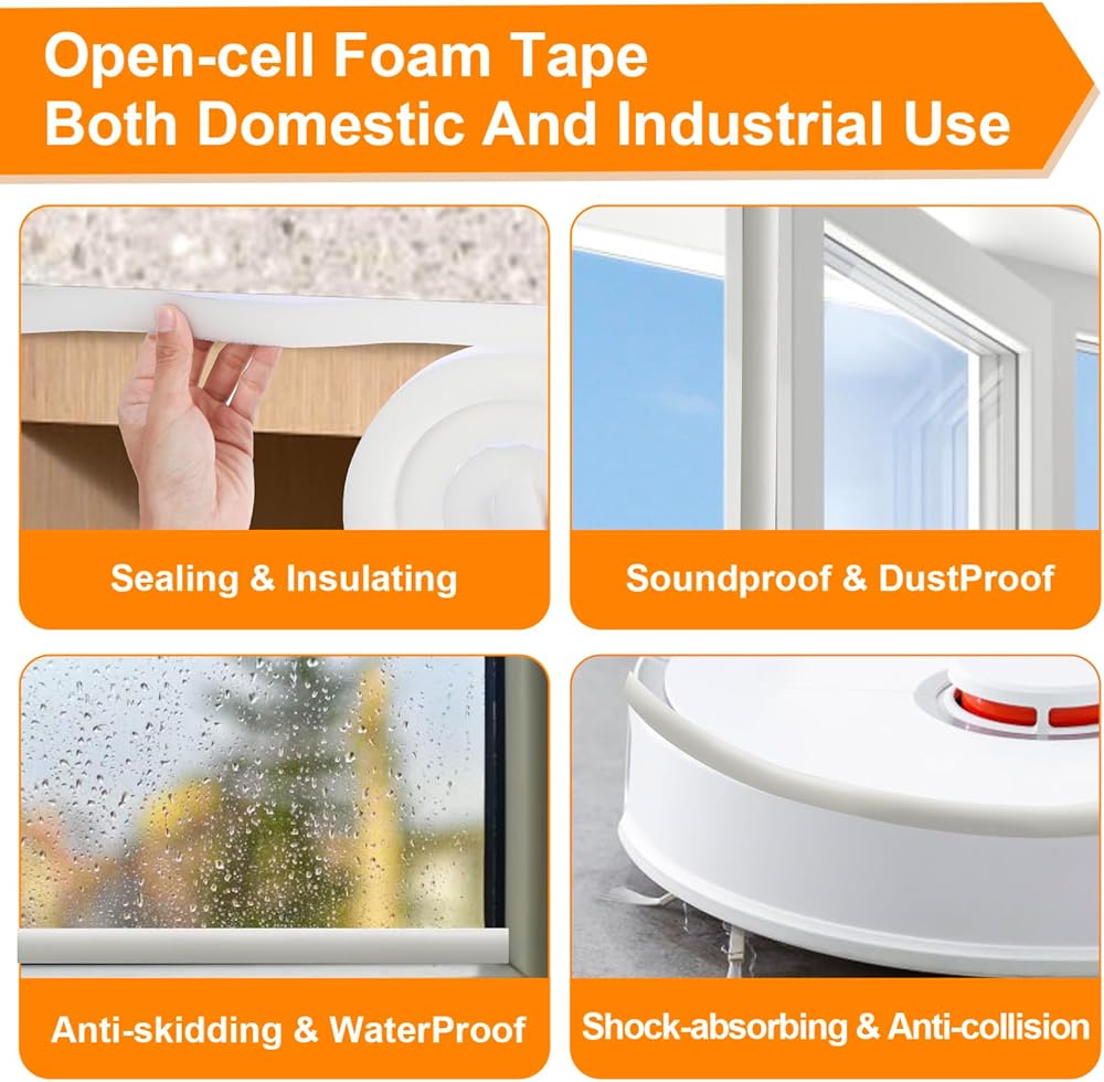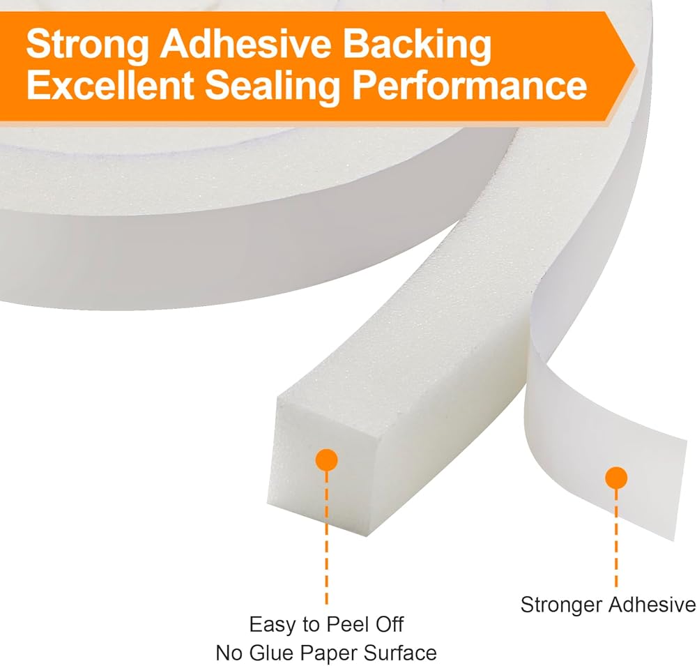 【Strong Adhesive Insulation Foam】Compared with most other white adhesive foam seal strip, this tape has upgraded strong traceless adhesive backing, non-degumming and waterproof, stick firmly. Due to strong adhesive backing, it will not easily peel off.