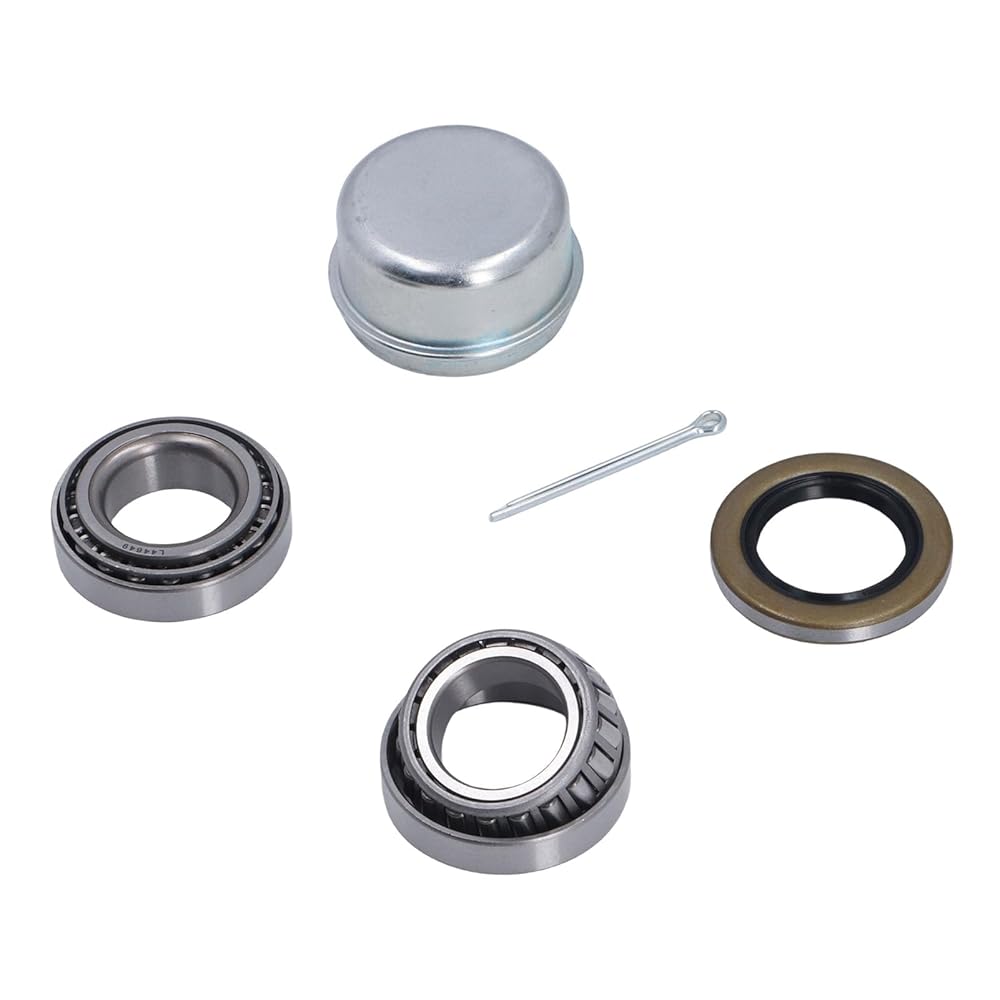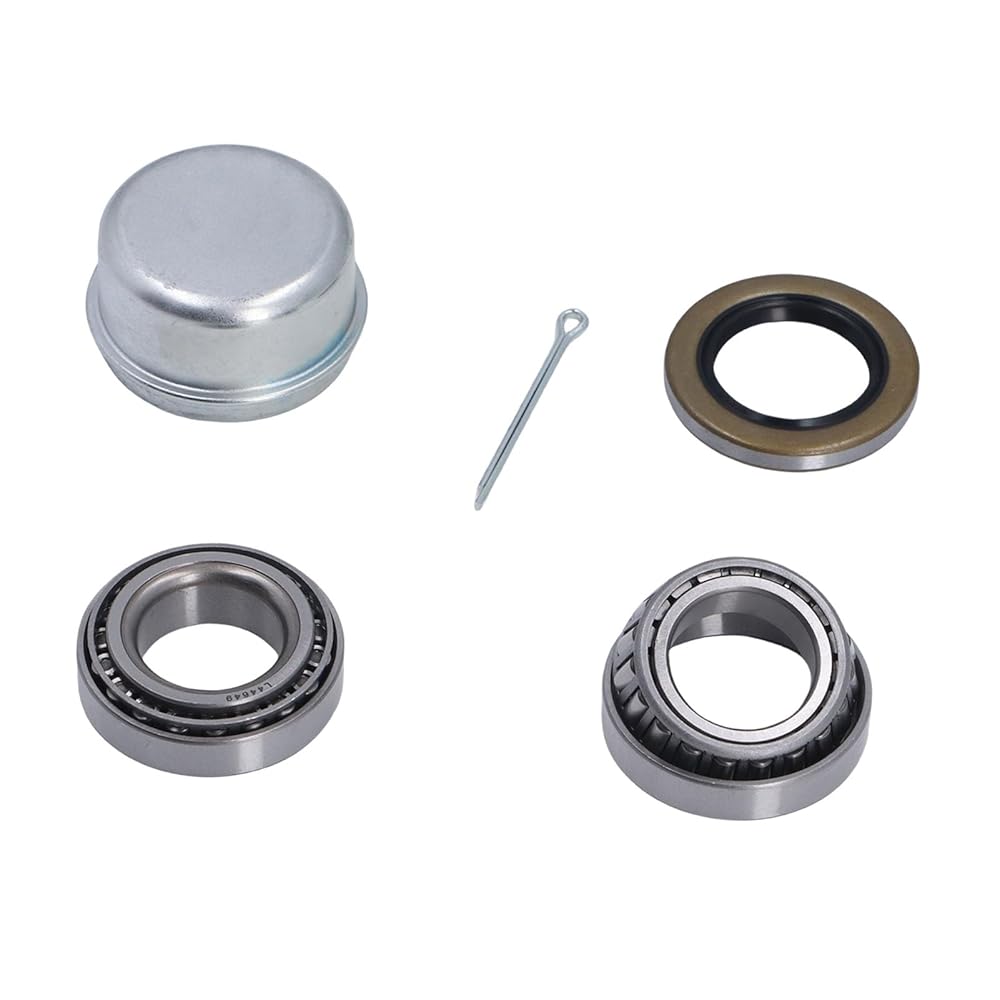 مجموعة محمل محور عجلة المقطورة Kikumi L44649 مع سباق L44610، أختام الشحوم لمحور مستقيم 1-1/16 بوصة، دبوس كوتر، غطاء غبار المقطورة