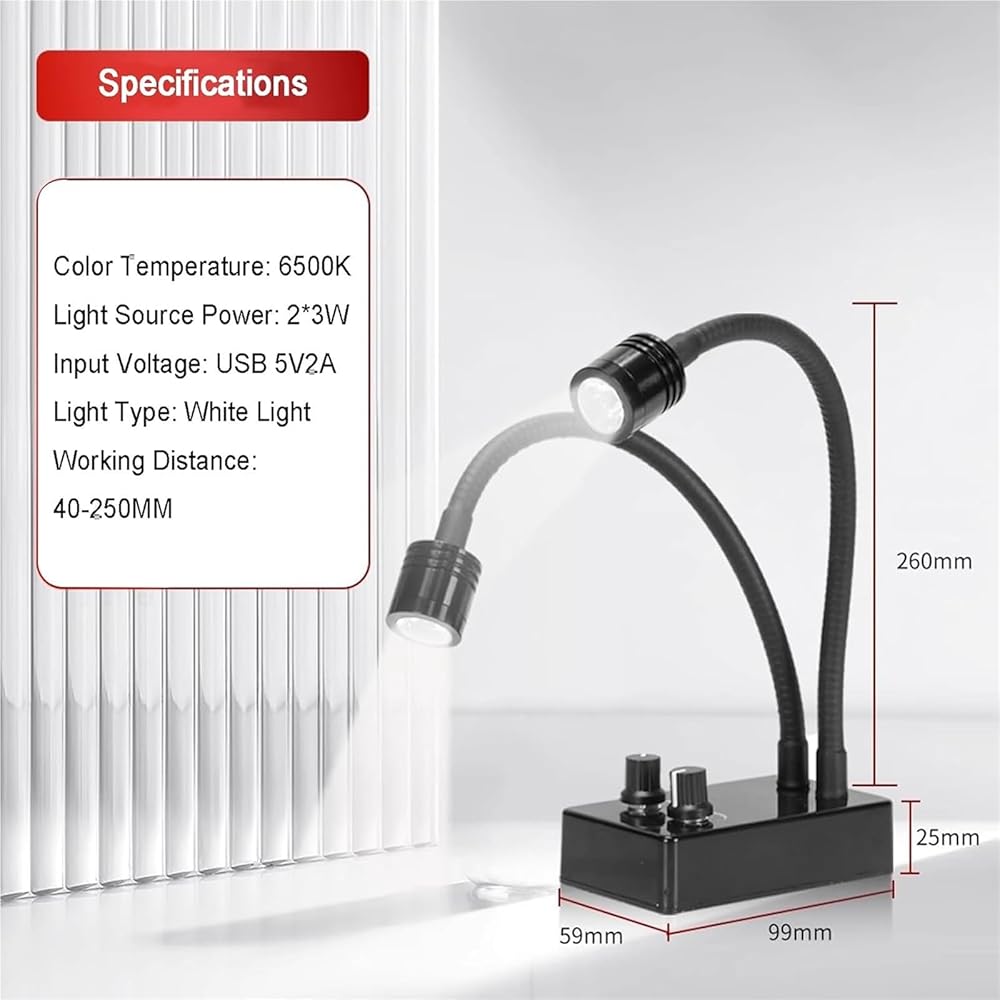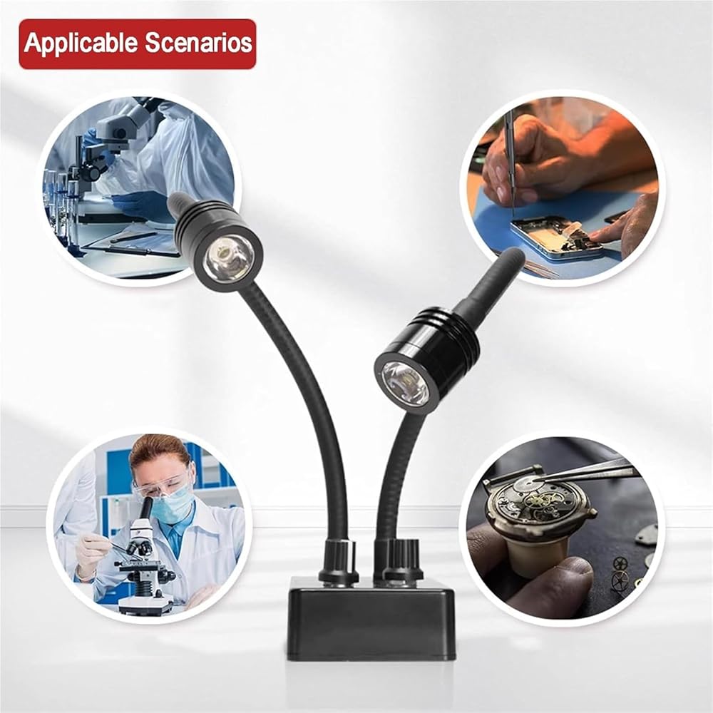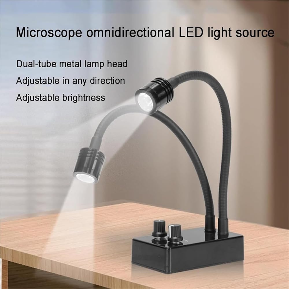 【Dual Gooseneck Adjustable Angle】Flexible dual gooseneck arms allow 360° angle adjustment, enabling precise light alignment to meet diverse observation needs and boost operational flexibility.