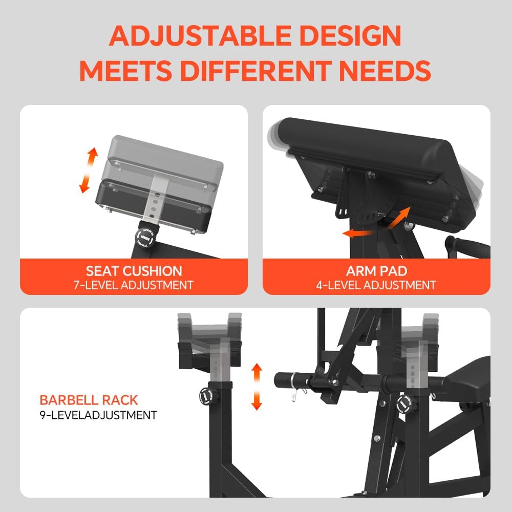 عزل دقيق للعضلة ذات الرأسين: تم تصميم هذا المقعد لتدريب عضلات العضلة ذات الرأسين المستهدف، ويضمن أقصى قدر من مشاركة العضلات ونموها مع كل تجعيد، مما يجعله الخيار الأمثل لعشاق تدريب القوة الجادين.