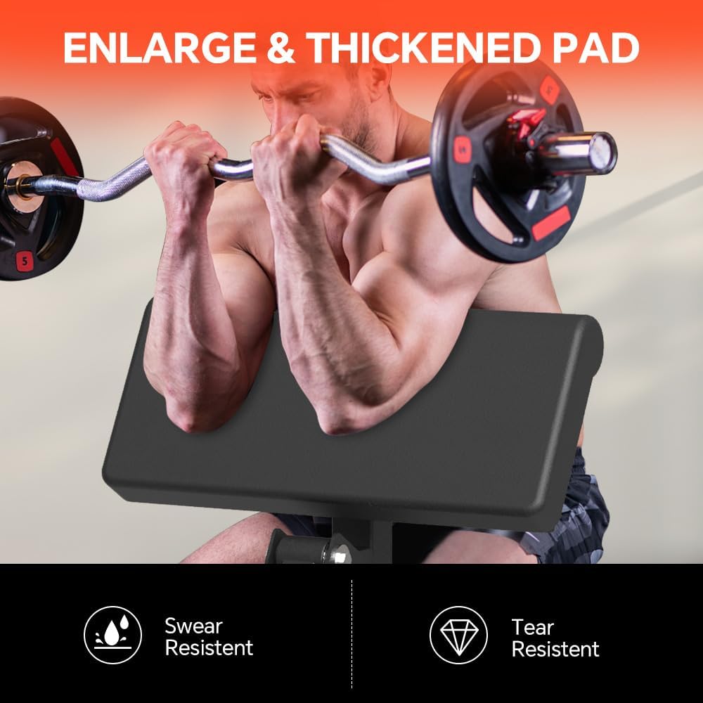وظيفة مزدوجة لتحقيق مكاسب نهائية: أكثر من مجرد مقعد مجعد للواعظ! تعمل المقابض الإضافية المدمجة مثل آلة تجعيد العضلة ذات الرأسين، مما يتيح تجعيد العضلة ذات الرأسين بشكل ثابت ضمن نطاق ثابت من الحركة للحصول على أفضل النتائج.