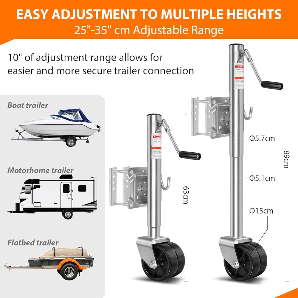 【سعة 1500 رطل】يمكن تعديل ارتفاع المقطورة لدينا بسهولة من 25 بوصة إلى 35 بوصة لاستيعاب ألسنة المقطورة التي تتراوح من 2 بوصة إلى 5.5 بوصة، مما يساعدك على رفع وخفض المقطورات بسهولة بسعة تصل إلى 1500 رطل/680 كجم.