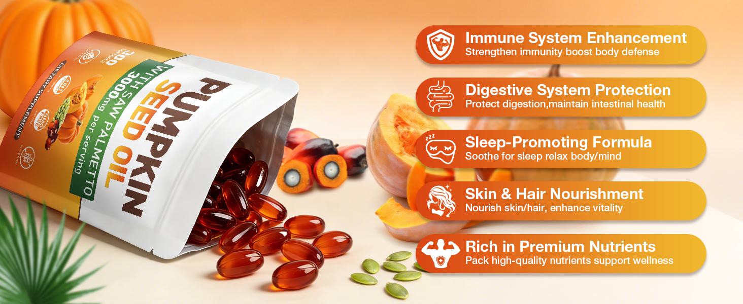 كبسولات زيت بذور اليقطين: مكونات عالية التركيز مضغوطة على البارد، لا تستخدم المذيبات، مستخلصة فقط من بذور اليقطين عالية الجودة وغير المعدلة وراثيًا. يحتوي المركبان في مركب واحد على مستخلص نخيل المنشار ويحتفظ بالأحماض الدهنية الأساسية والستيرول النباتي ومضادات الأكسدة، التي تستخدم تقليديًا للحفاظ على صحة البروستاتا والمثانة والمسالك البولية والشعر. يتم شراؤها بعناية ومعالجتها بدقة، مما يوفر الدعم الغذائي الطبيعي للرجال والنساء الذين يبحثون عن مفاهيم صحية شاملة