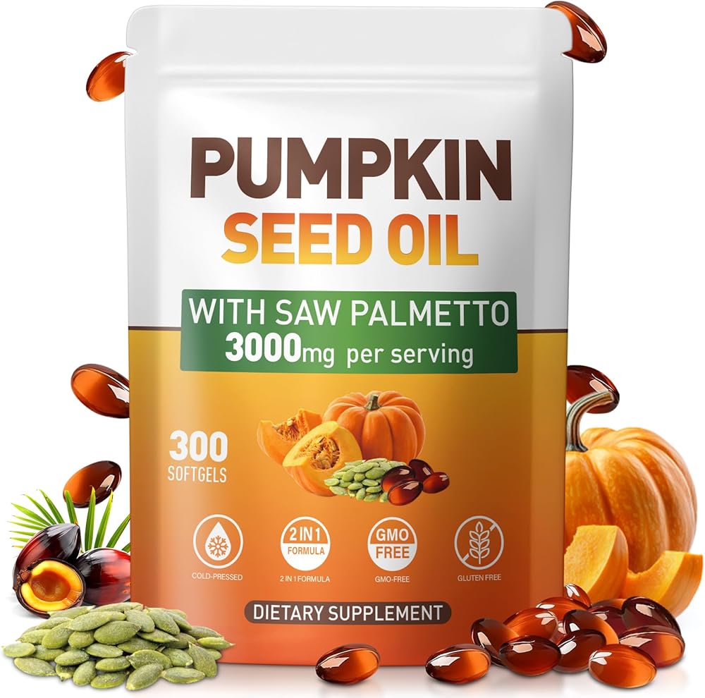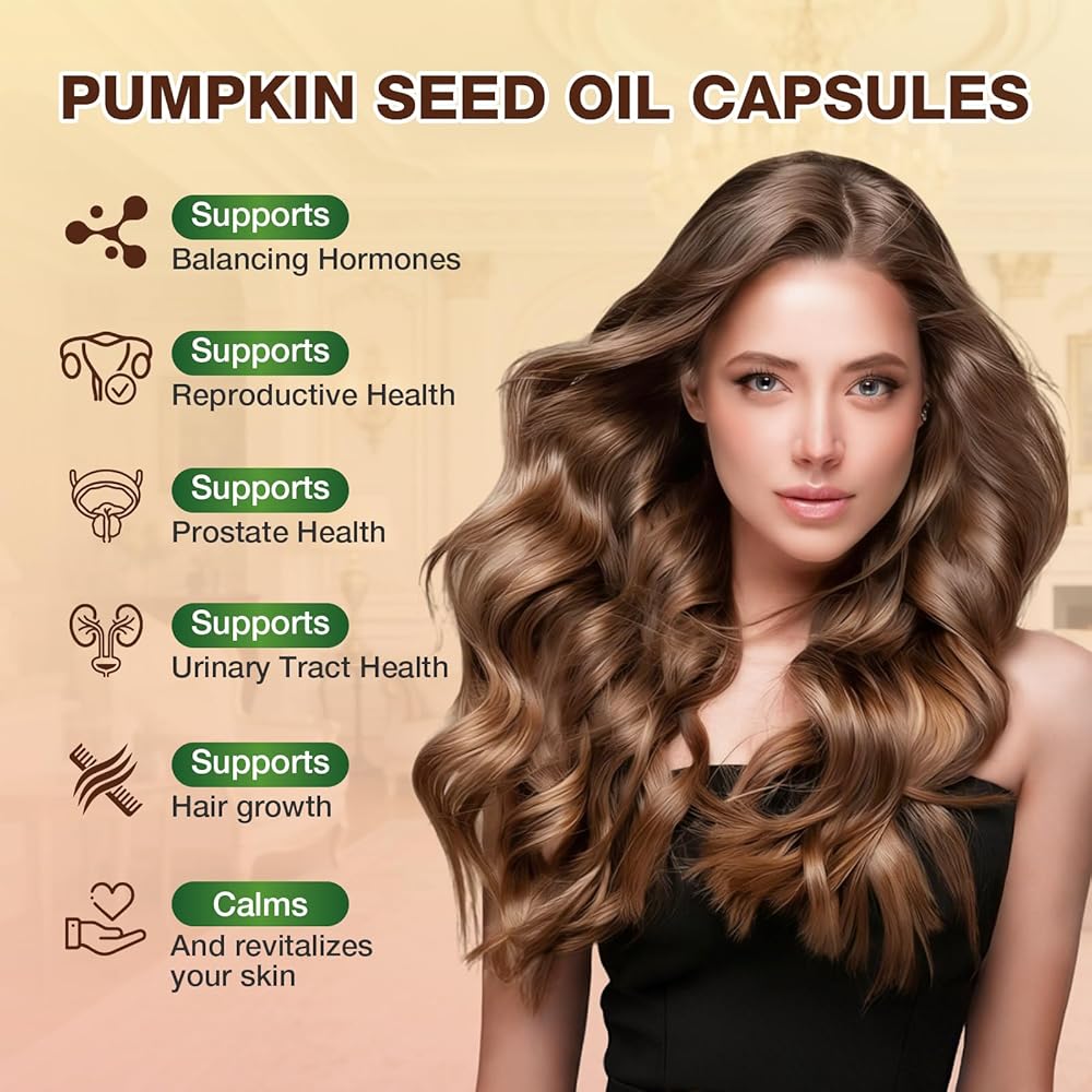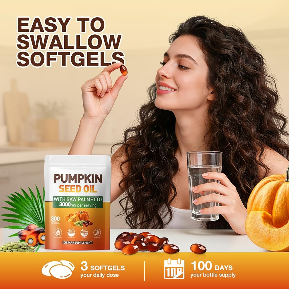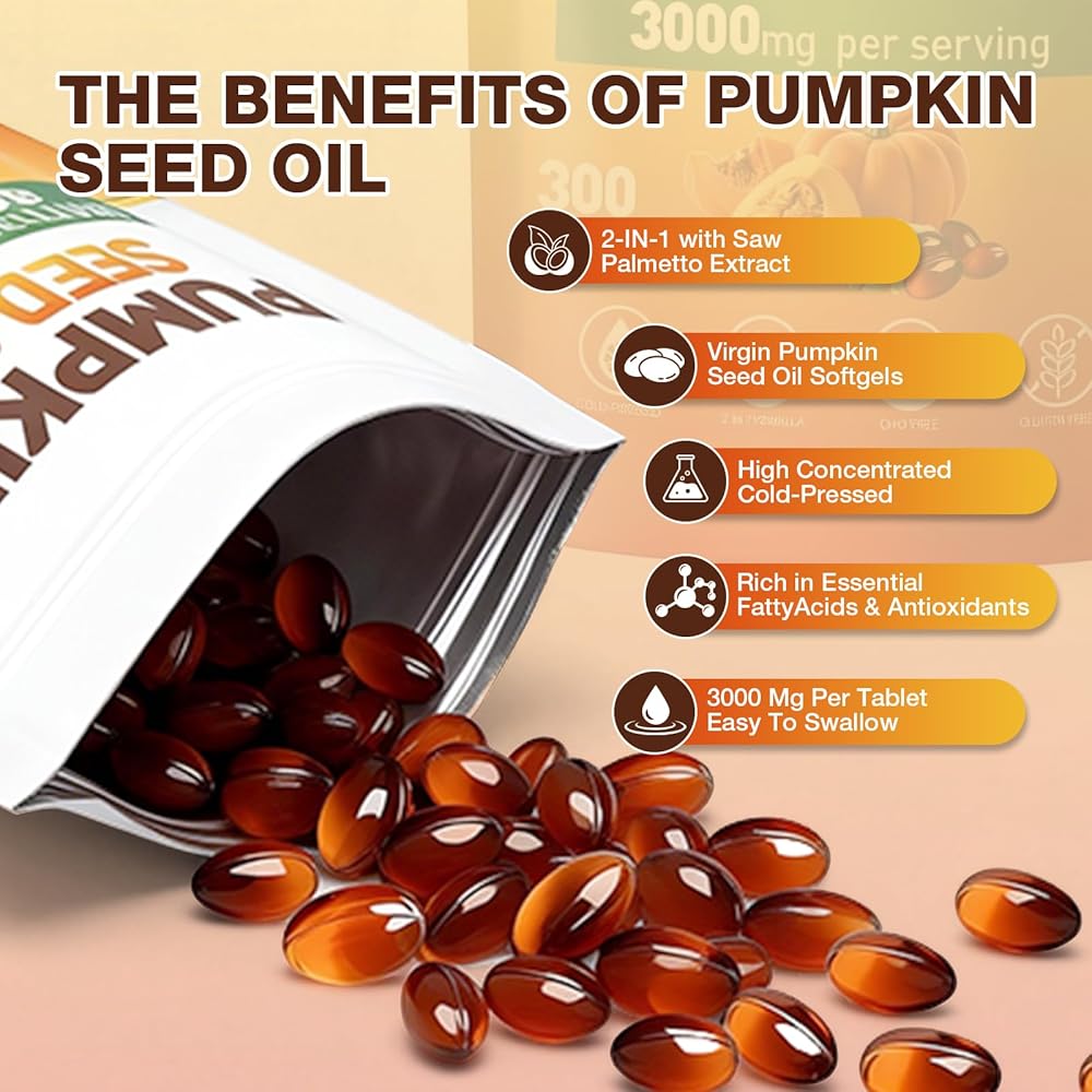 كبسولات زيت بذور اليقطين - زيت بكر نقي معصور على البارد، وأحماض دهنية أساسية وستيرولات نباتية | 300 كبسولة | يدعم صحة الشعر والمثانة البولية والبروستاتا | غير معدل وراثيًا