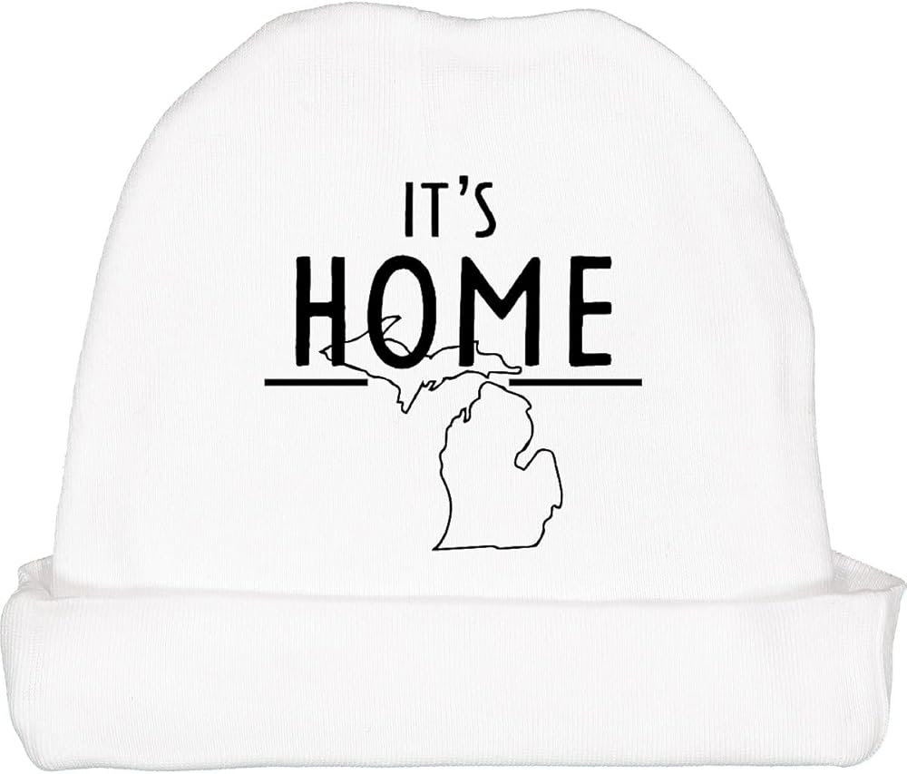 Whether you're born and raised, or you just arrived, show off with our It's Home- State of Michigan Outline Baby Beanie Hat.