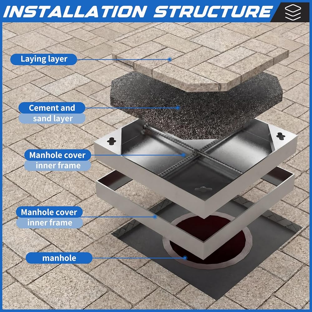 Beautiful Concealed Design: This stainless steel septic tank cover features a flush, concealed design that blends effortlessly into its surroundings, creating a smooth, tripping-free road surface. Not only does it maintain the beauty and functionality of streets and cities, but its strong invisibility enhances the aesthetics of any environment, while the convenient slot allows for easy lifting with a hook or flat-head screwdriver